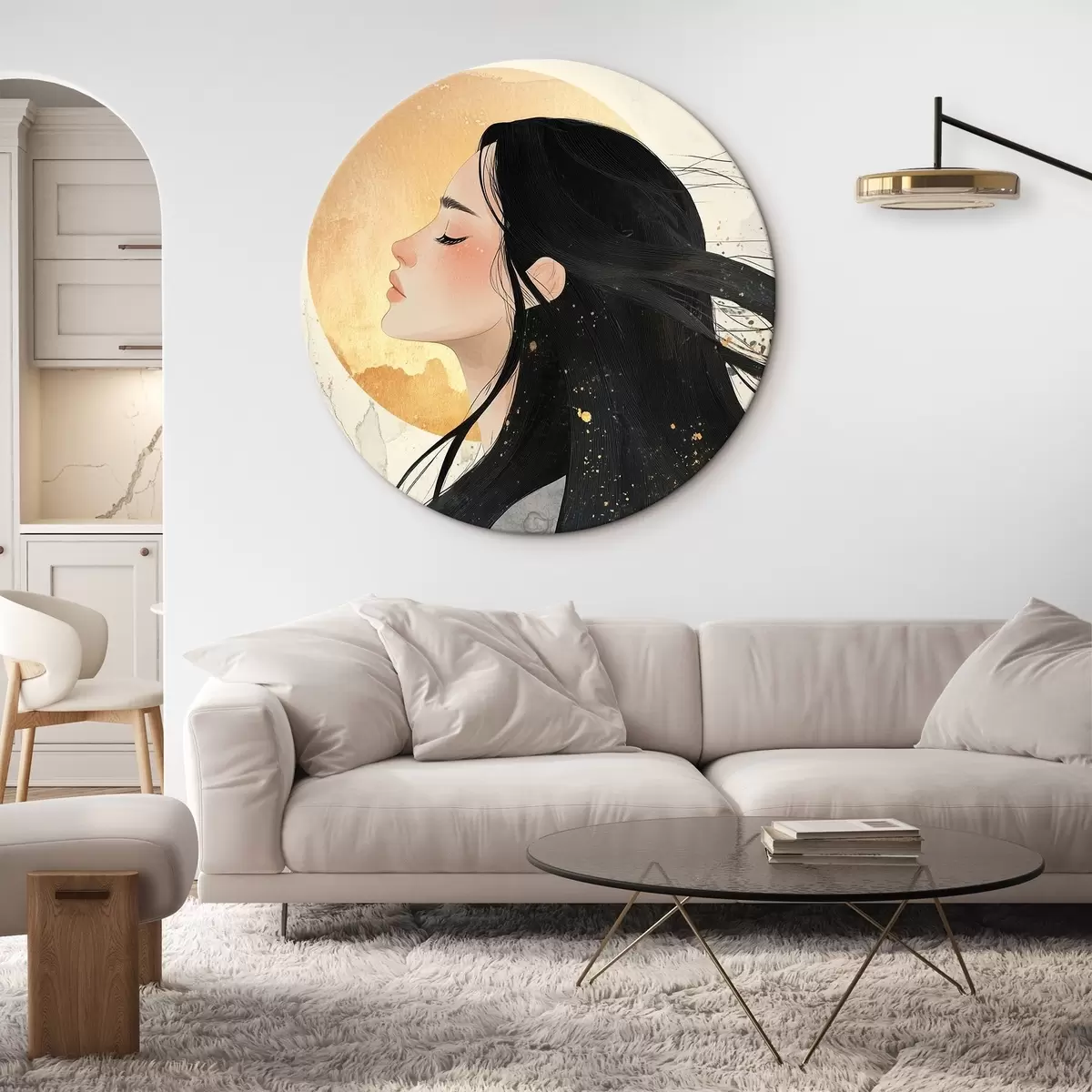 Quadri rotondi Bella ragazza con i capelli scuri, stile orientale, sole r42194