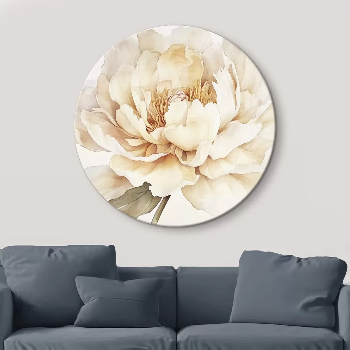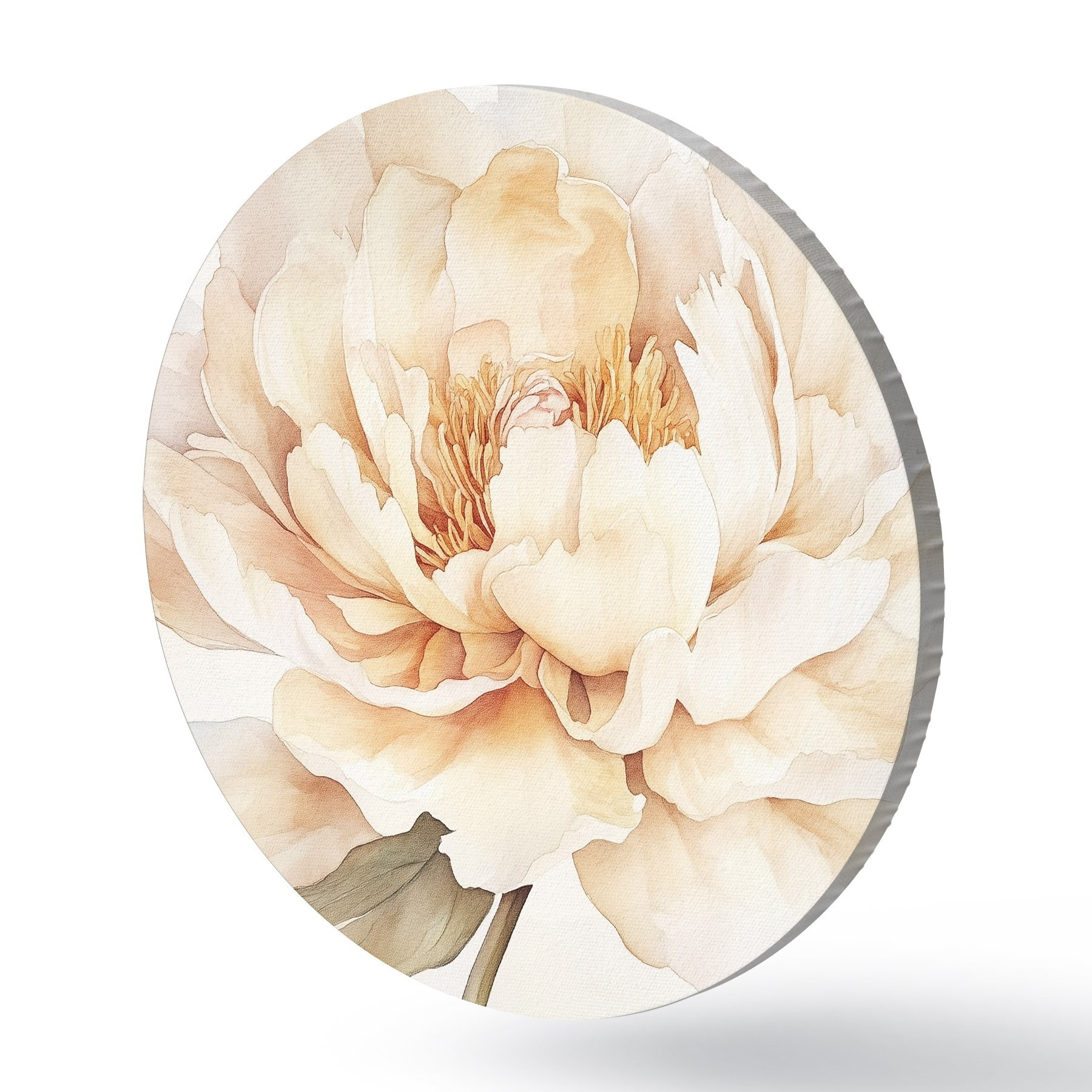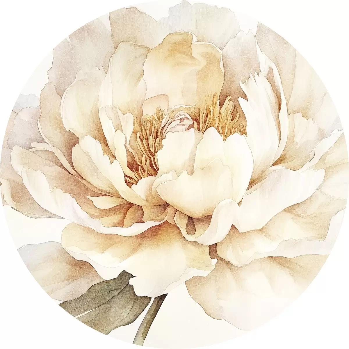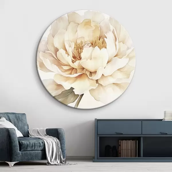 Quadri rotondi Bellissimo fiore di peonia, colori tenui e cremosi, stile acquerello r42201