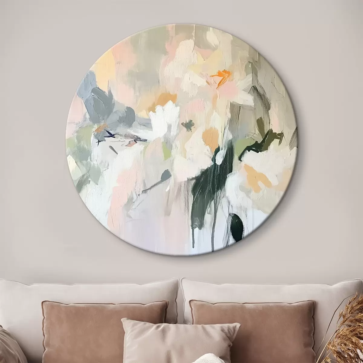 Quadri rotondi Disegno astratto, stile acrilico, colori tenui e naturali r42204
