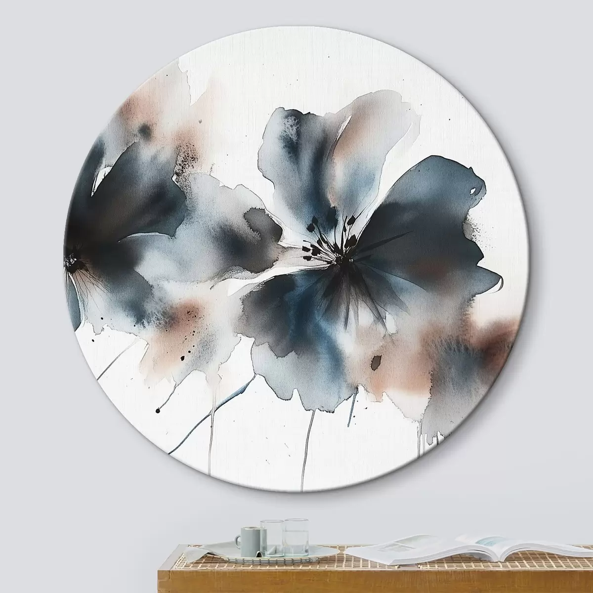 Quadri rotondi Fiori in stile acquerello, colori blu r42208