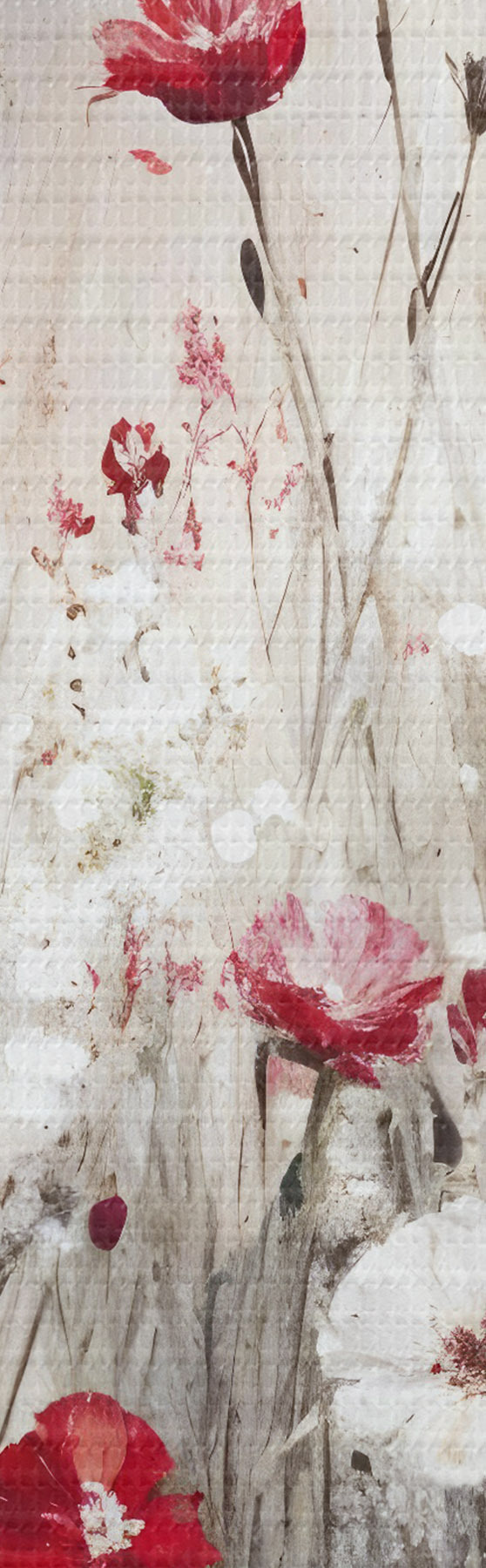 Immagine Imitazione astratta di pittura a olio di un campo di papaveri e margherite rosse e bianche su uno sfondo grigio e materico Nr r42213