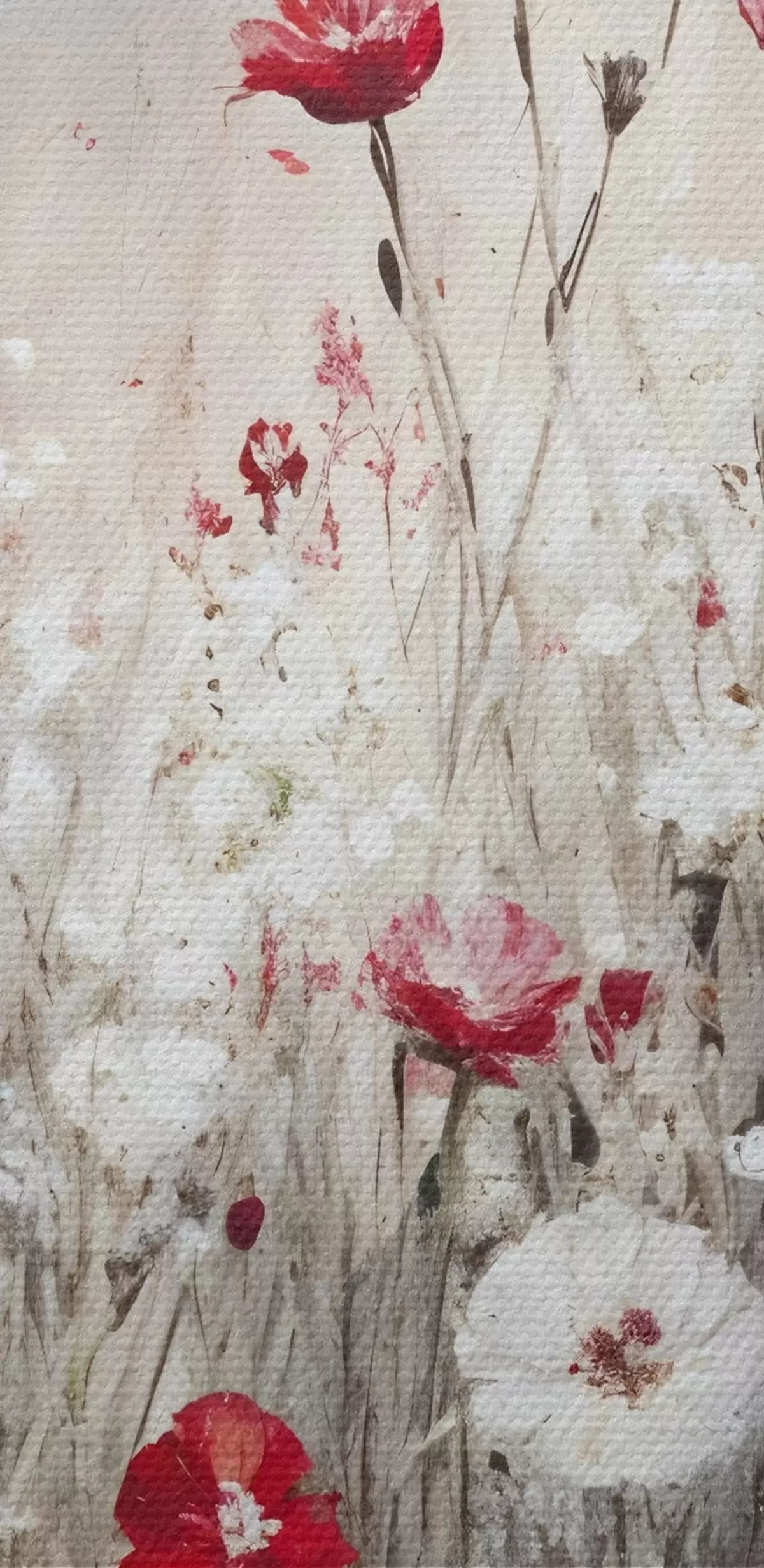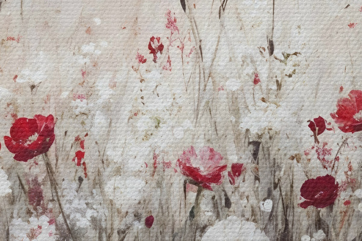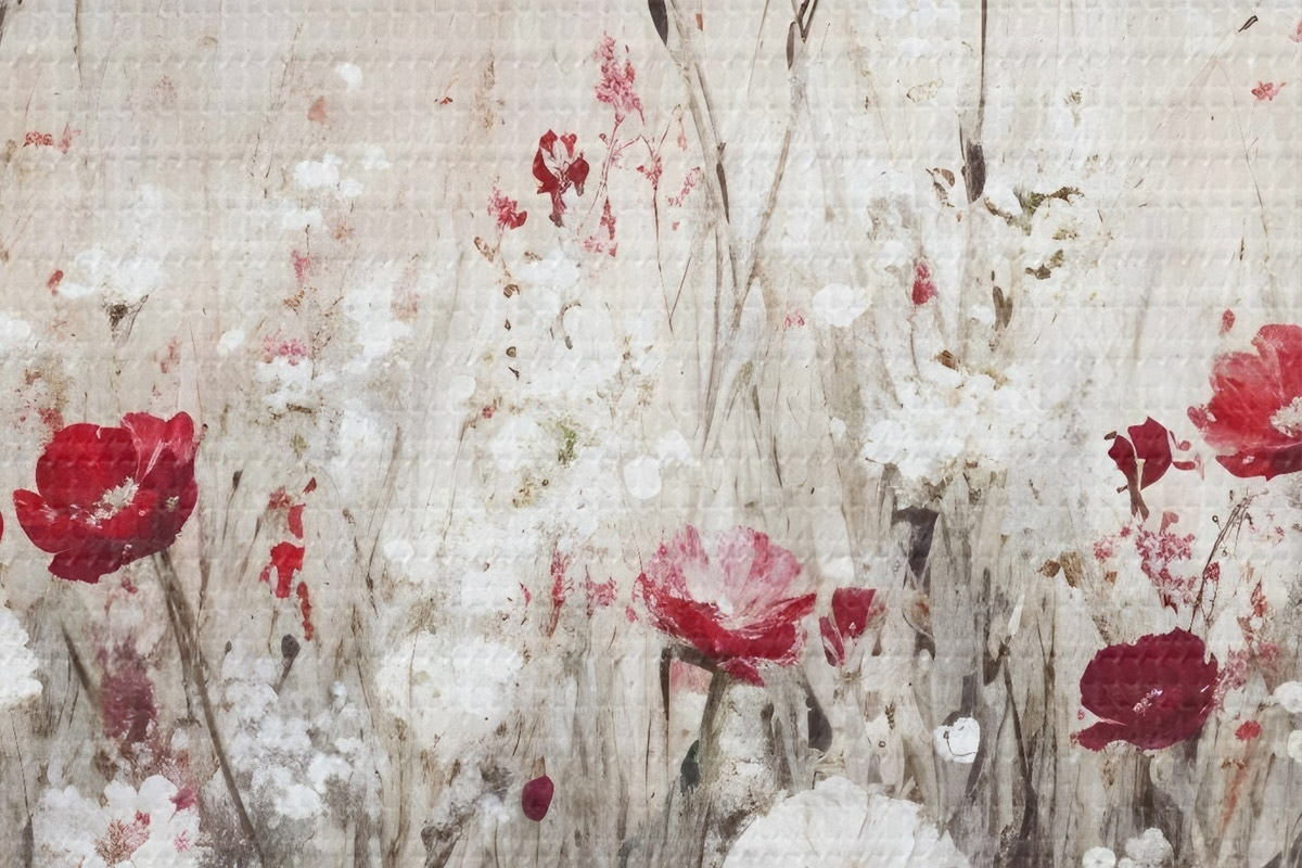 Immagine Imitazione astratta di pittura a olio di un campo di papaveri e margherite rosse e bianche su uno sfondo grigio e materico Nr r42213