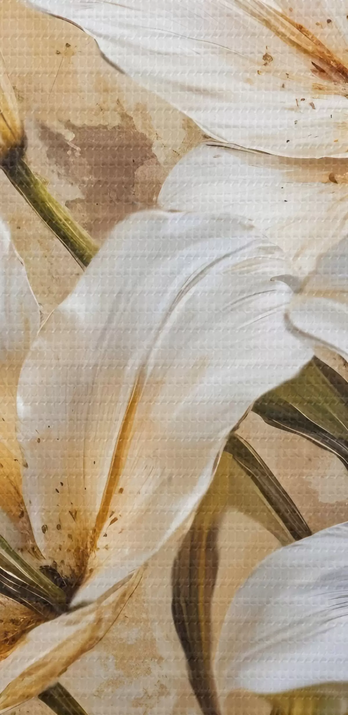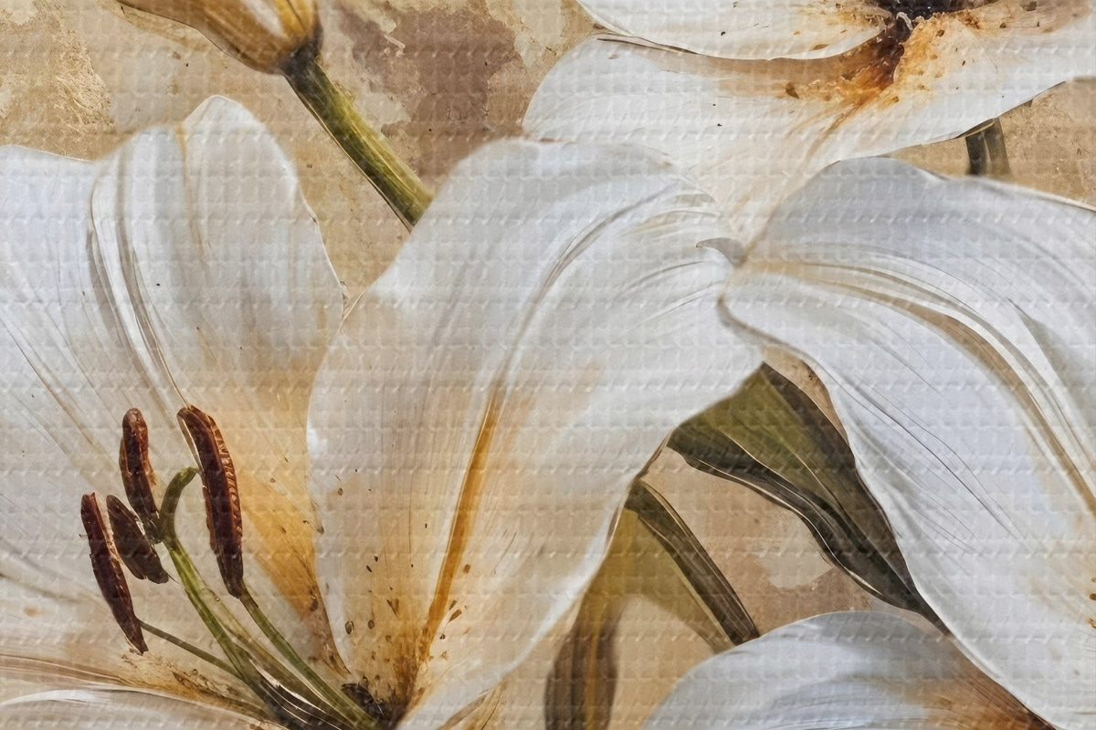 Immagine Gigli bianchi con centro giallo su sfondo beige strutturato Nr r42216