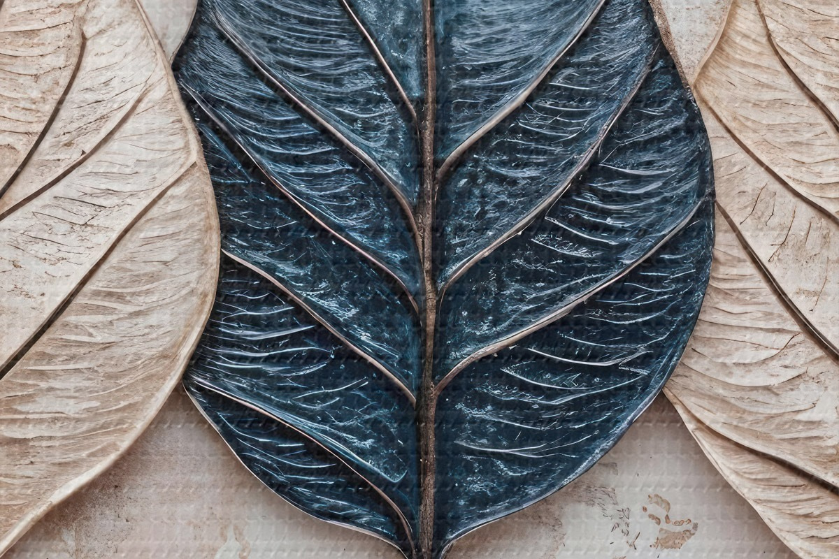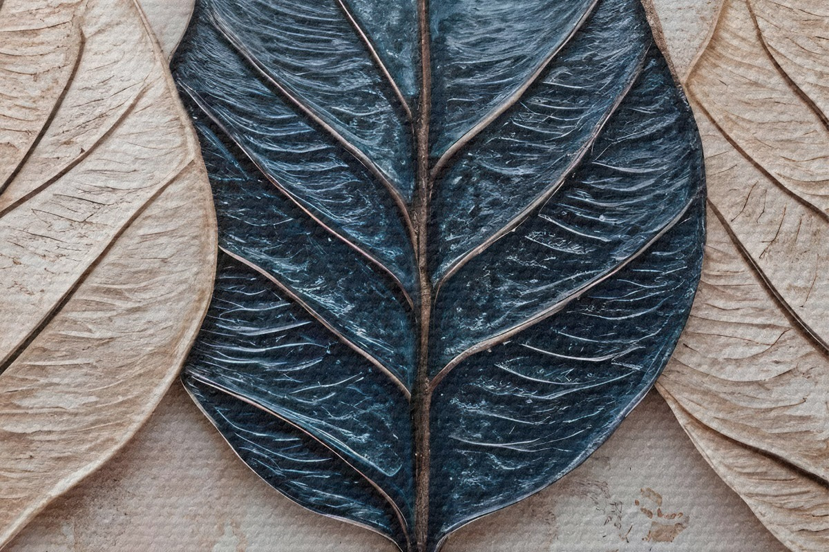 Immagine Foglie astratte autunnali assortite in varie tonalità di marrone, beige e blu disposte in fila su uno sfondo chiaro Nr r42217