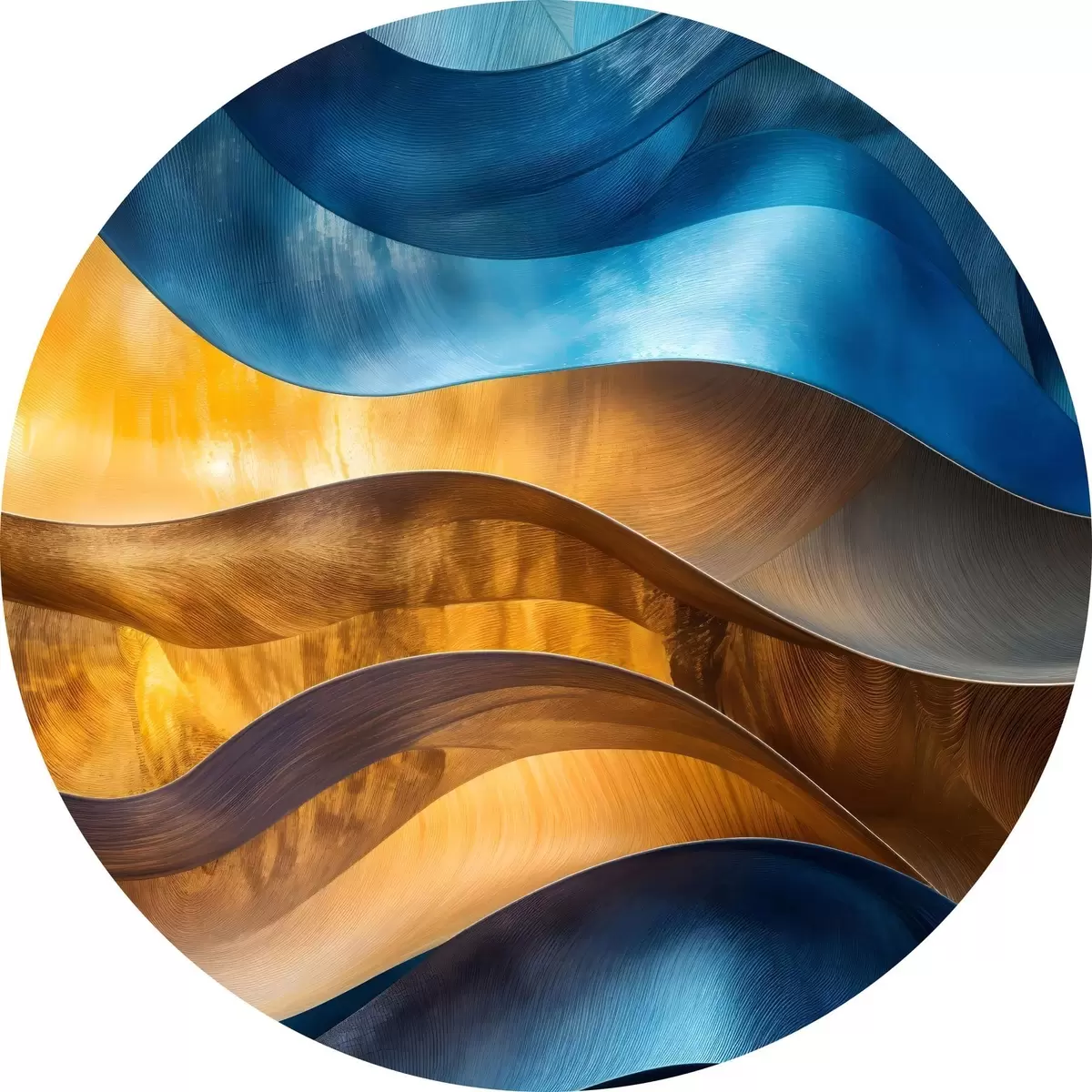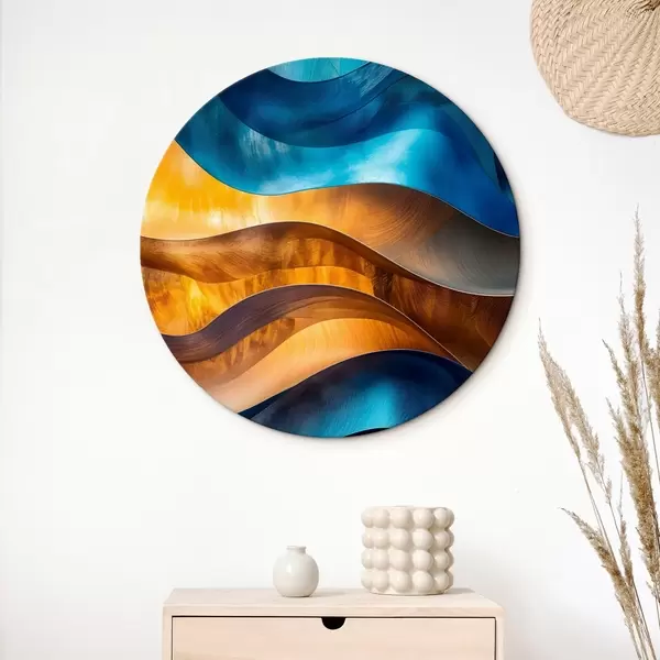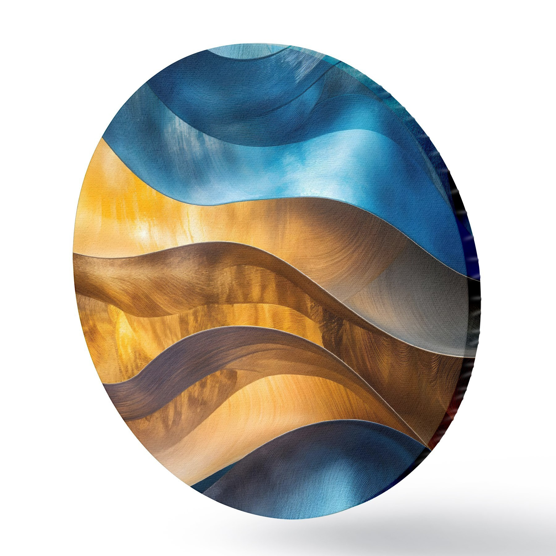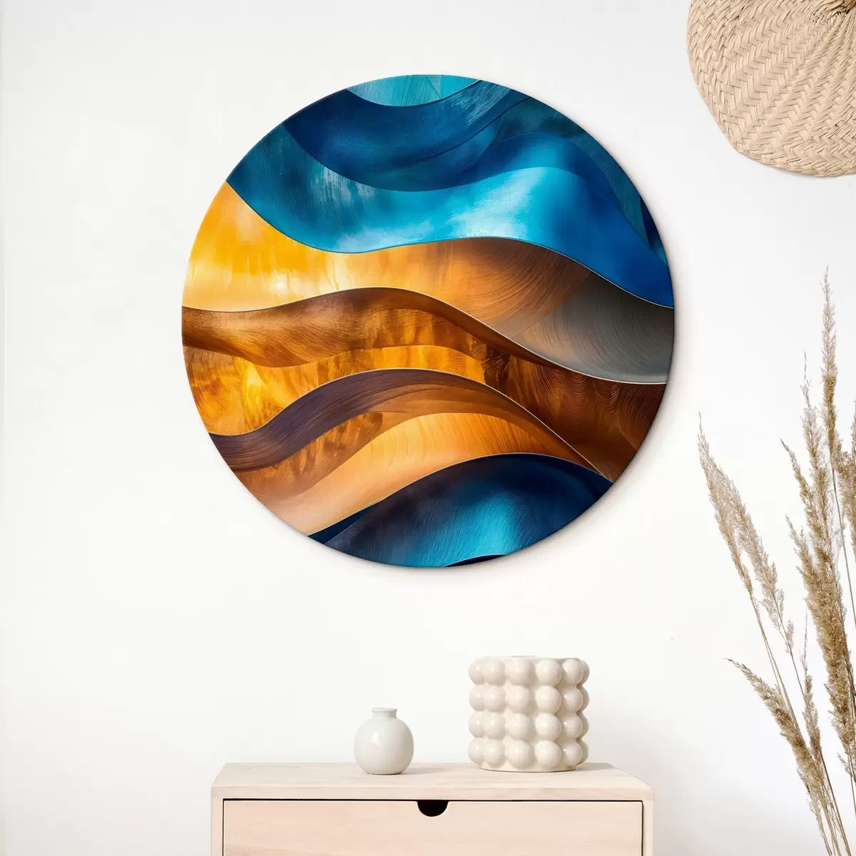 Quadri rotondi Forme ondulate astratte di arte moderna nei toni del blu, dell'arancio e del marrone r42224
