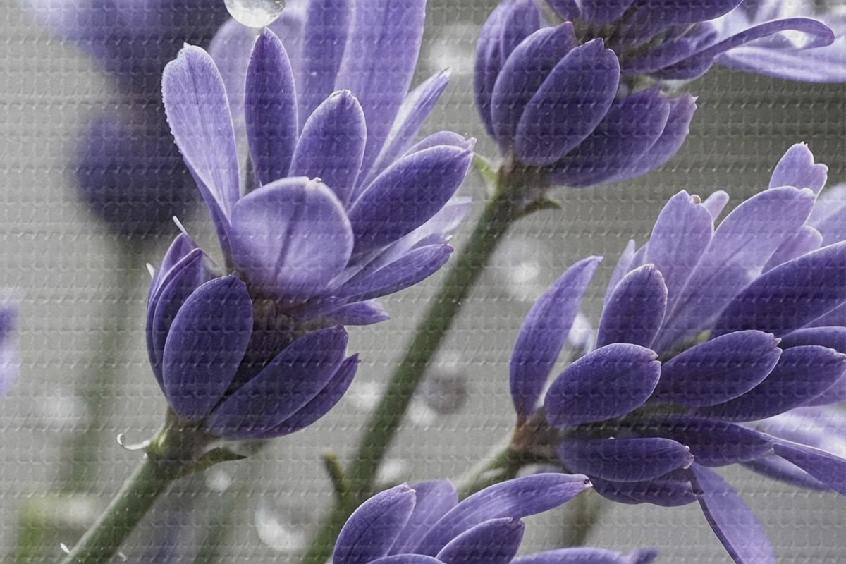 Immagine Fiori di lavanda viola con gocce d'acqua sui petali, su sfondo sfocato Nr r42229