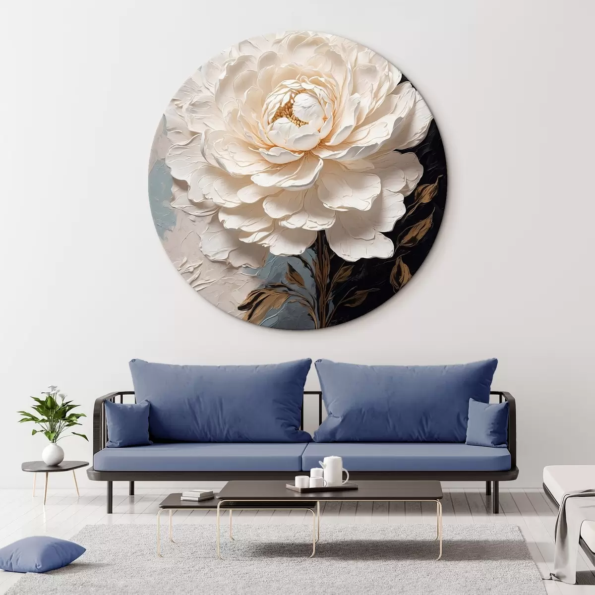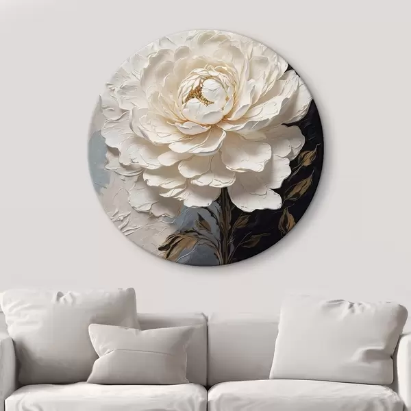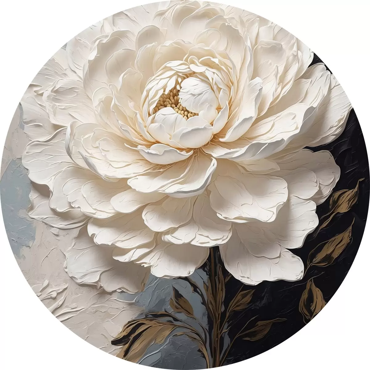 Quadri rotondi Fiore su sfondo ad olio in bianco e nero r42249
