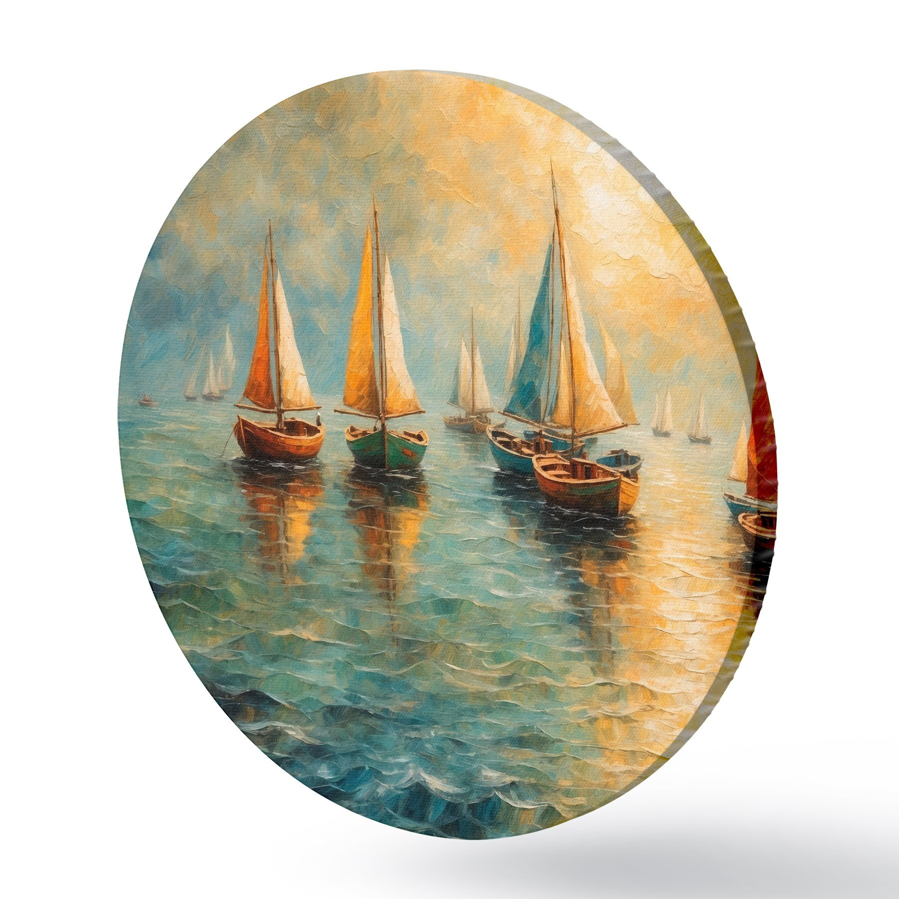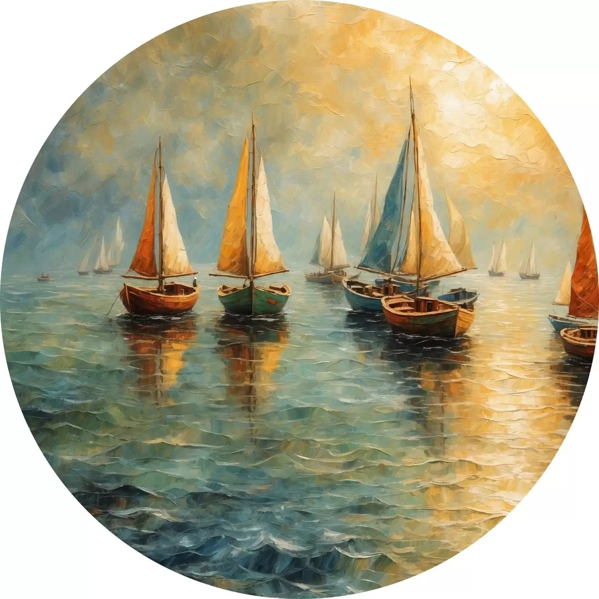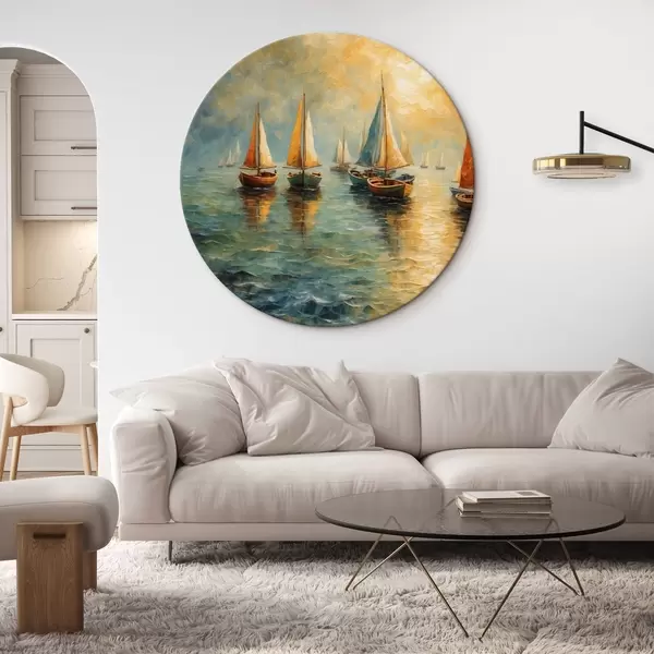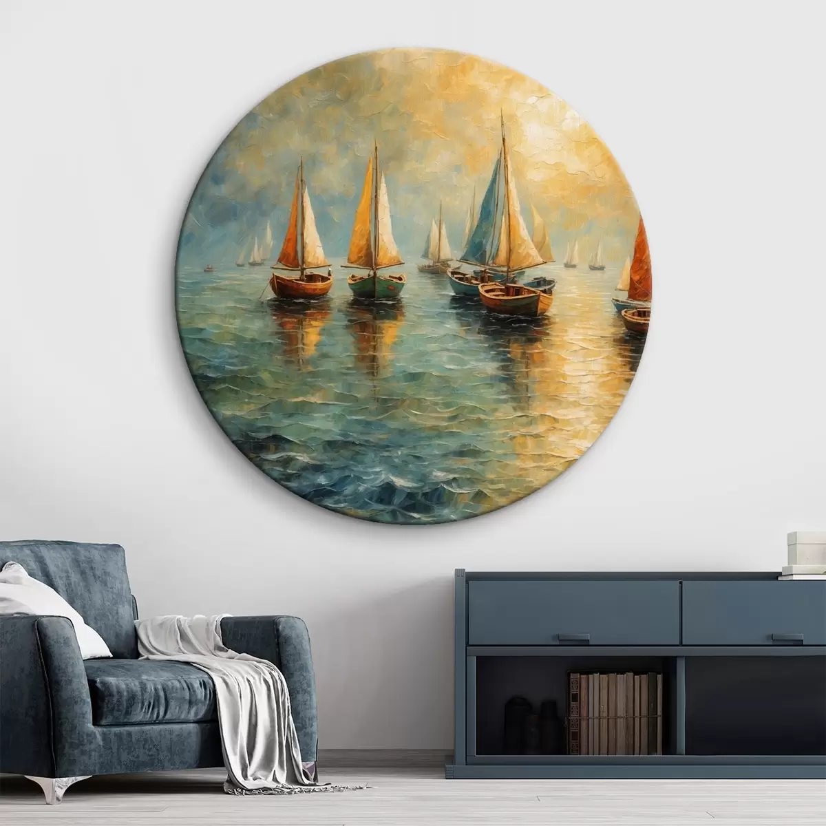 Quadri rotondi Navi che salpano verso il tramonto r42251