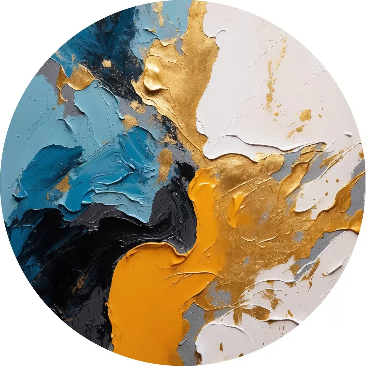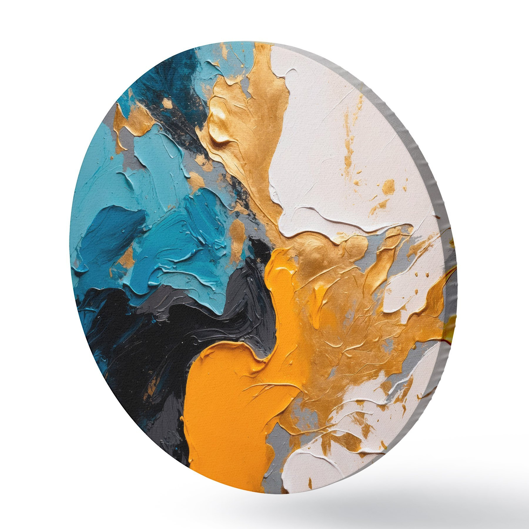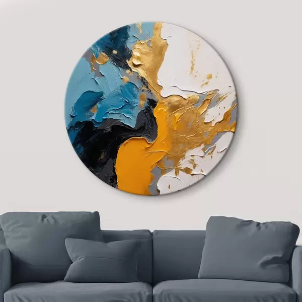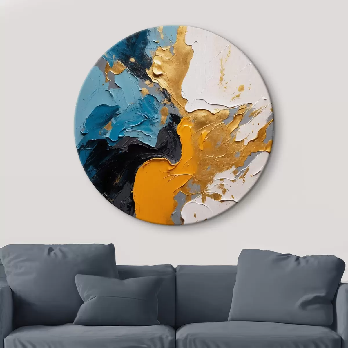 Quadri rotondi Pittura astratta con colori blu, bianco e giallo r42254