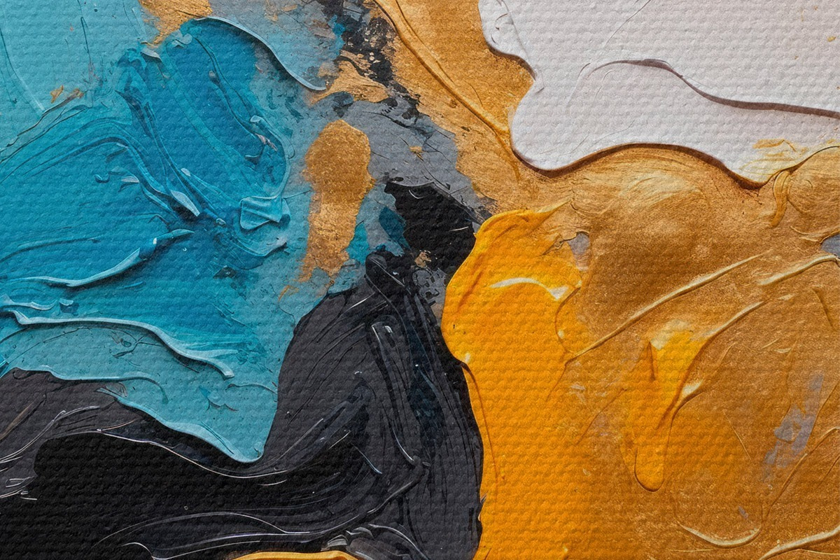 Immagine Pittura astratta con colori blu, bianco e giallo Nr r42254