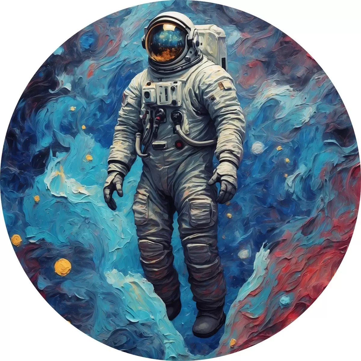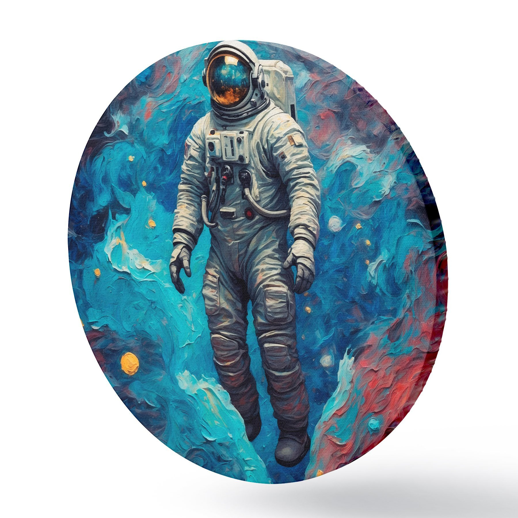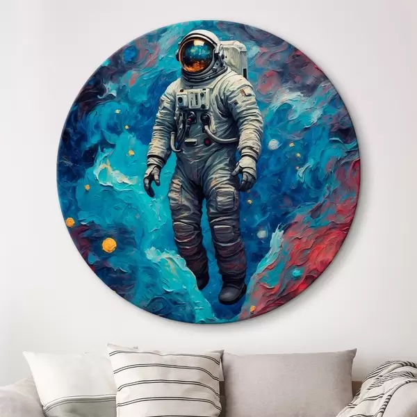 Quadri rotondi Astronauta su sfondo spaziale astratto in stile pittura ad olio r42265