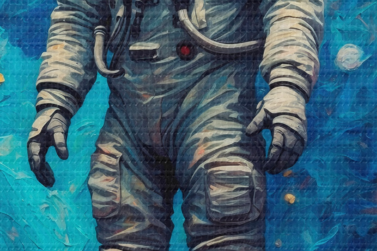 Immagine Astronauta su sfondo spaziale astratto in stile pittura ad olio Nr r42265