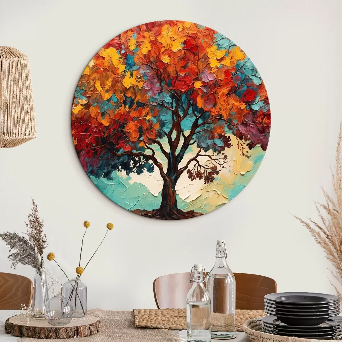 Quadri rotondi Albero su sfondo arancio-blu in stile pittura ad olio r42267