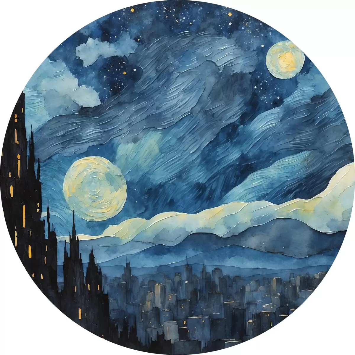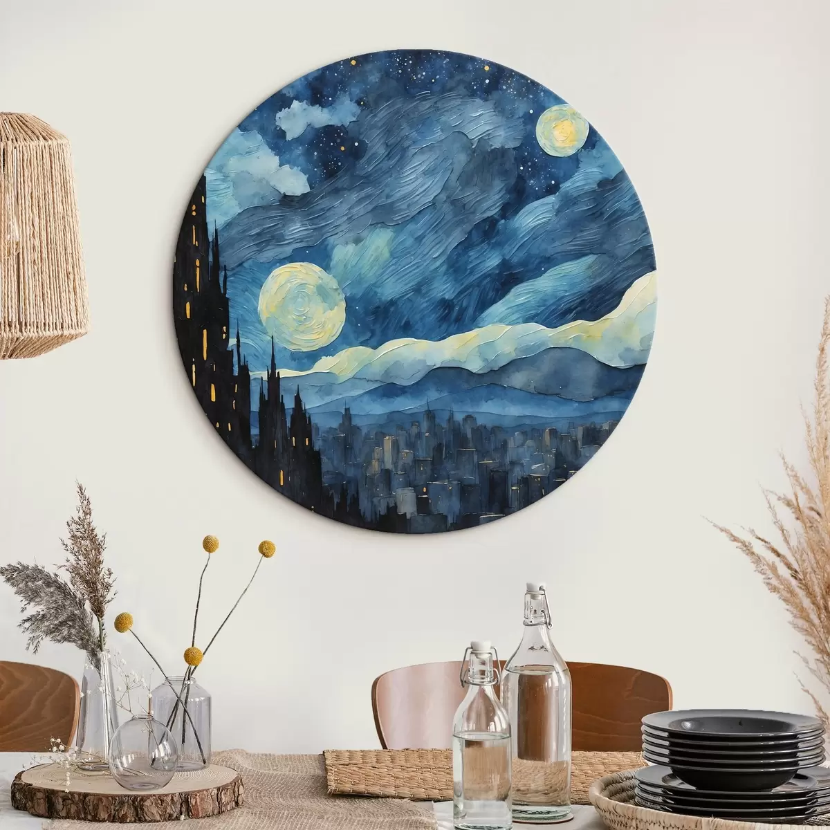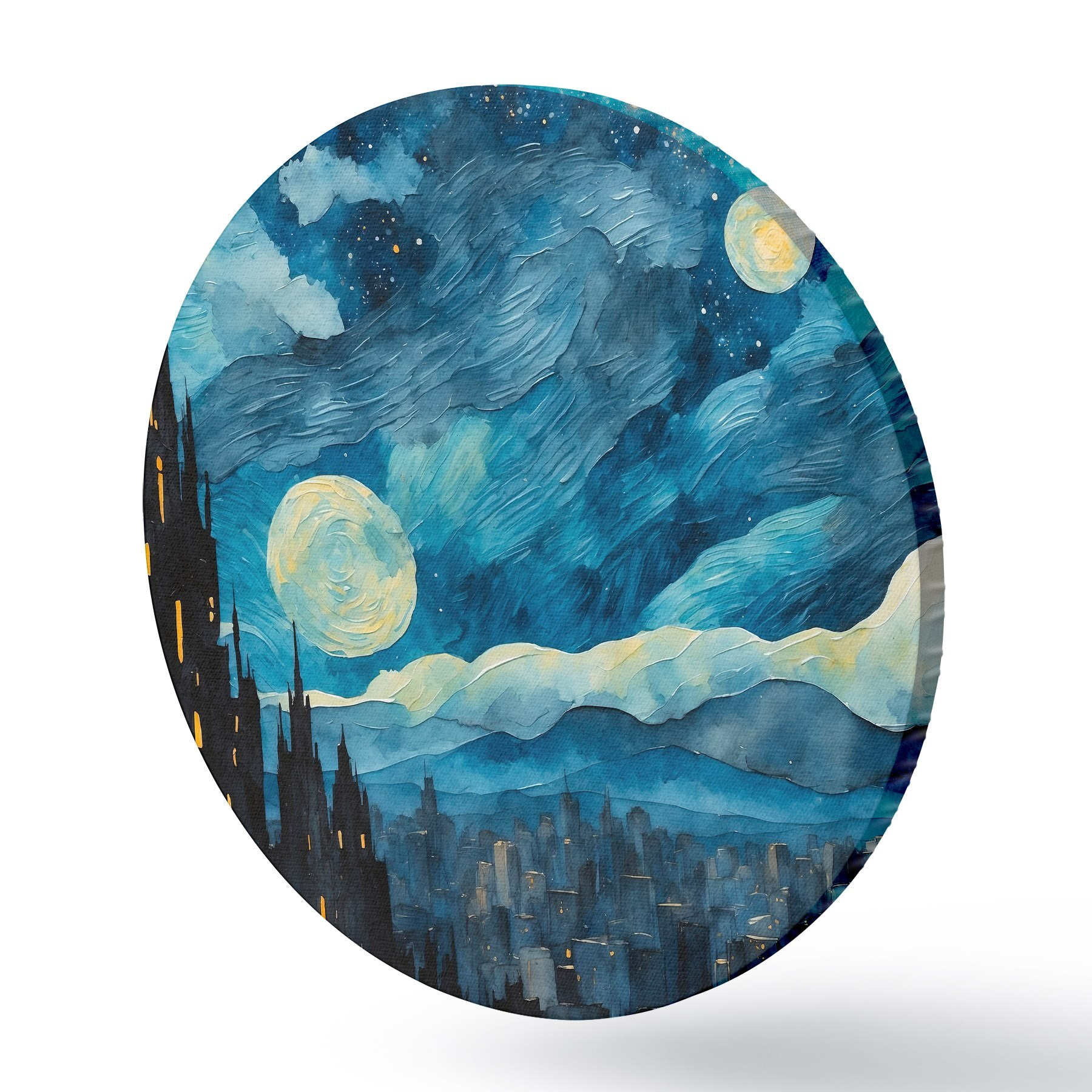Quadri rotondi Città notturna in stile pittura ad olio r42268