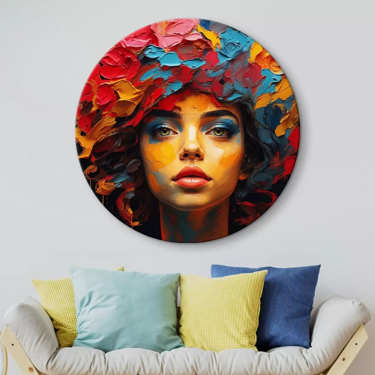 Quadri rotondi Ragazza con fiori sulla testa in stile pittura ad olio r42271