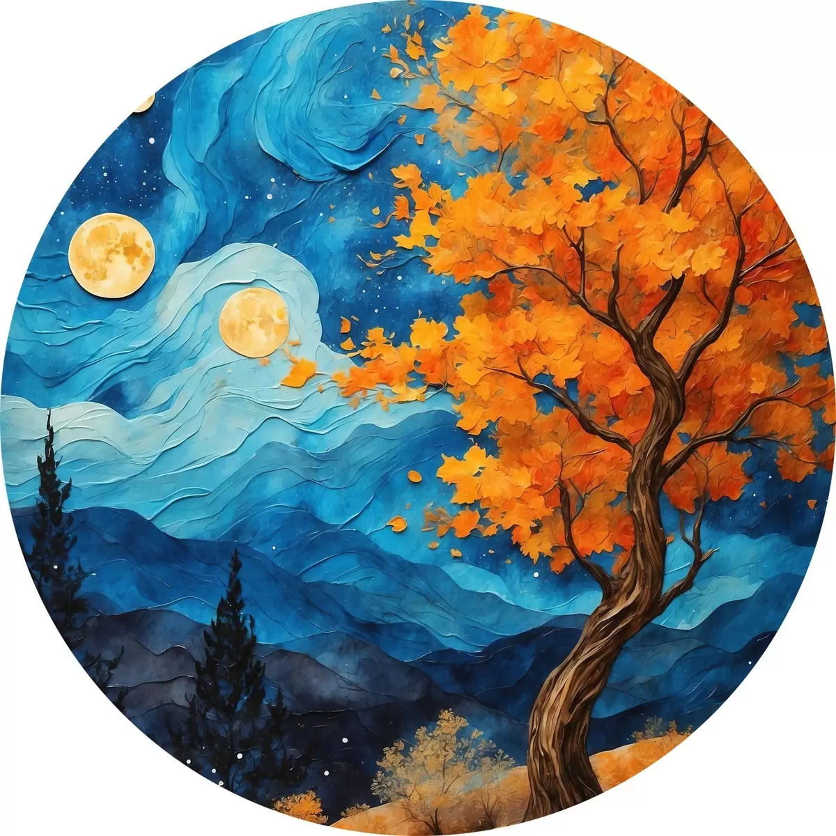 Quadri rotondi Albero che cresce su una collina di notte r42274