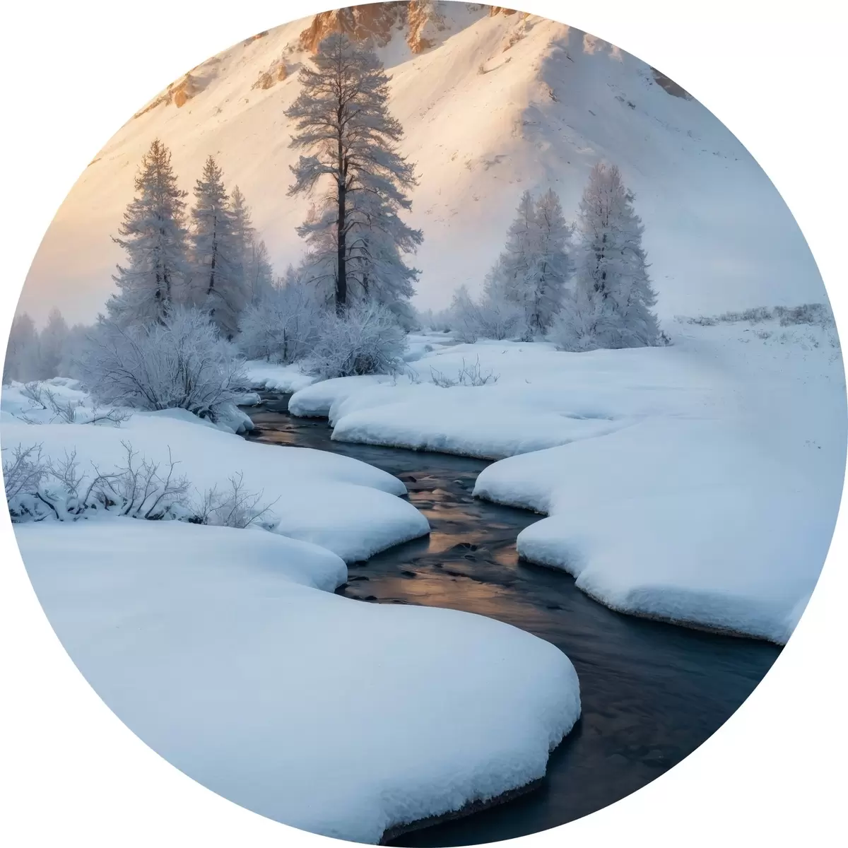 Quadri rotondi Ruscello che va verso la montagna r42281