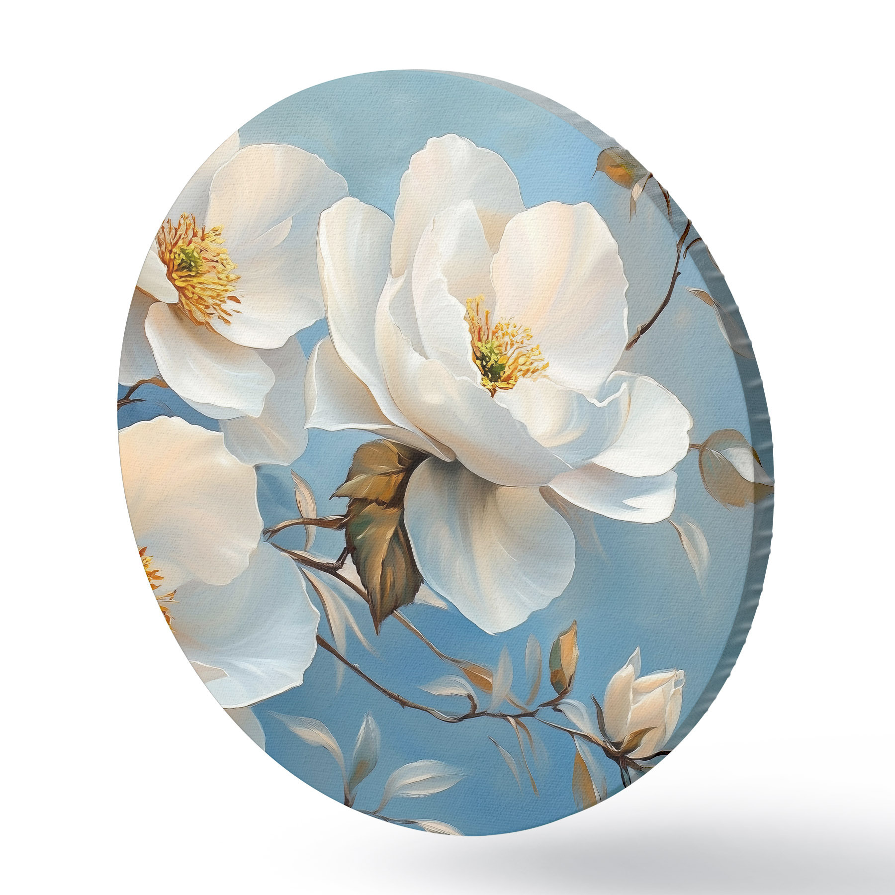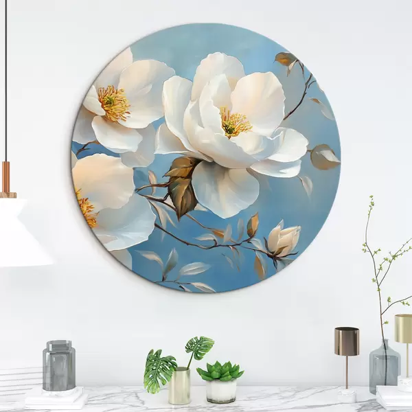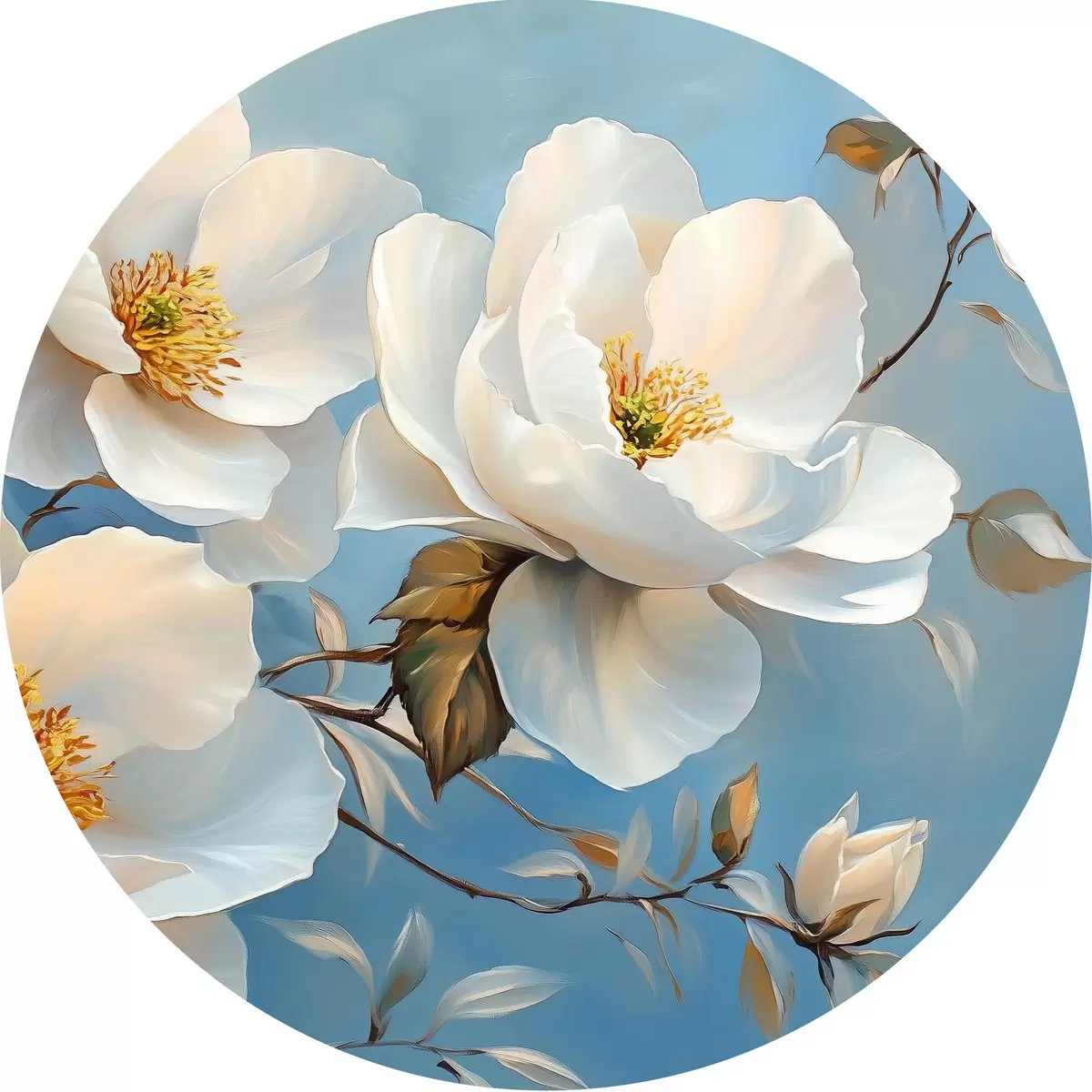 Quadri rotondi Grandi fiori bianchi su sfondo blu r42321