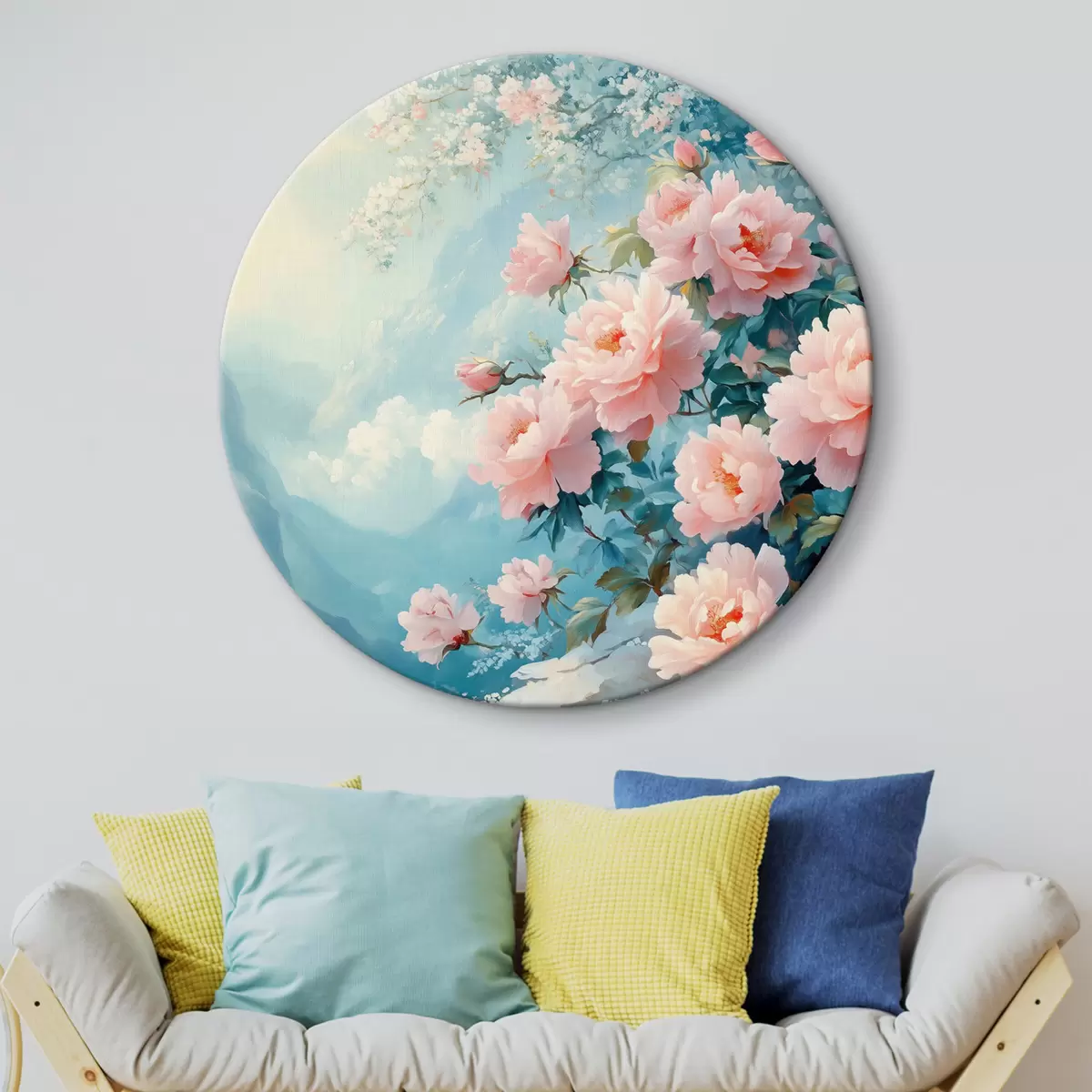 Quadri rotondi Montagne blu e fiori in primo piano r42324