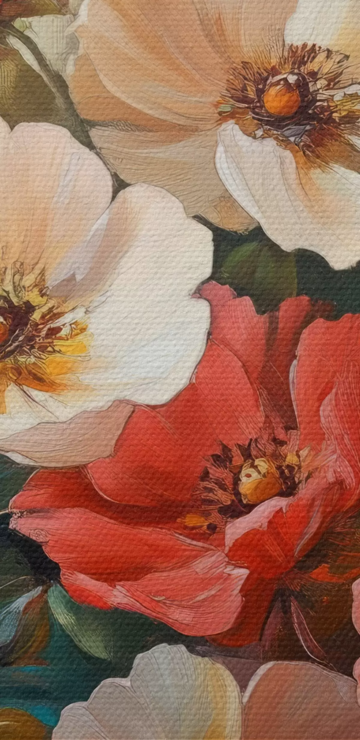 Sono disponibili tre tipi di materiale per l'ordinazione: Economic Canvas - materiale denso e resistente per la stampa digitale, identico alla tela del pittore, superficie impermeabile, riproduzione realistica dei dettagli, materiale a grana media. Premium Canvas - la trama ricorda la tela di un pittore (piccoli fili intrecciati). Riproduzione morbida e dettagliata dell'immagine su una superficie opaca. Eco-Premium - tessuto di alta qualità in 100% cotone. Grazie alle fibre naturali di cotone, il materiale è durevole e resistente all'usura. Eccellente riproduzione dei colori e dei dettagli.