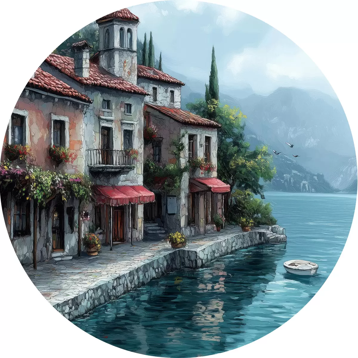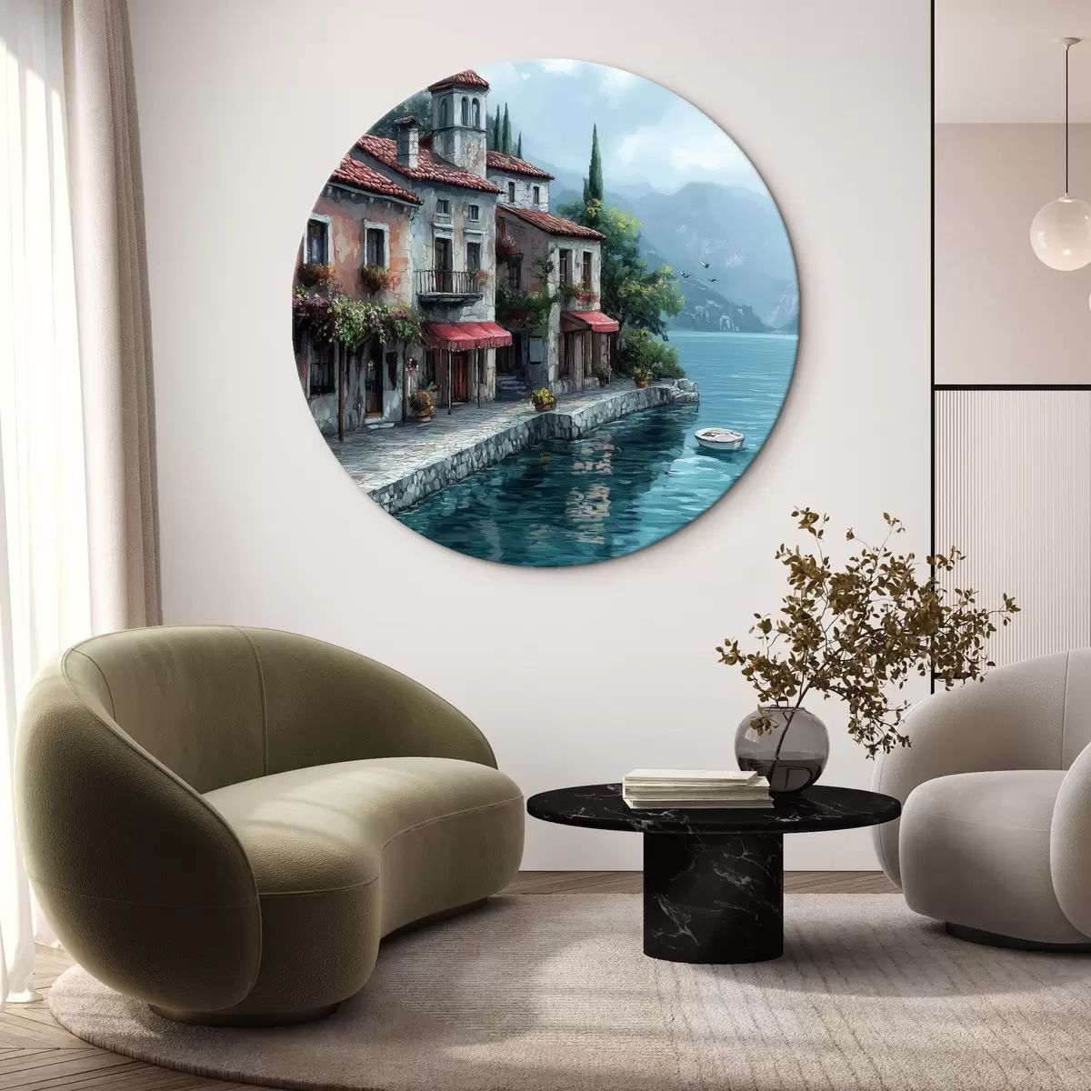 Quadri rotondi Casa sopra il lago in montagna r42334