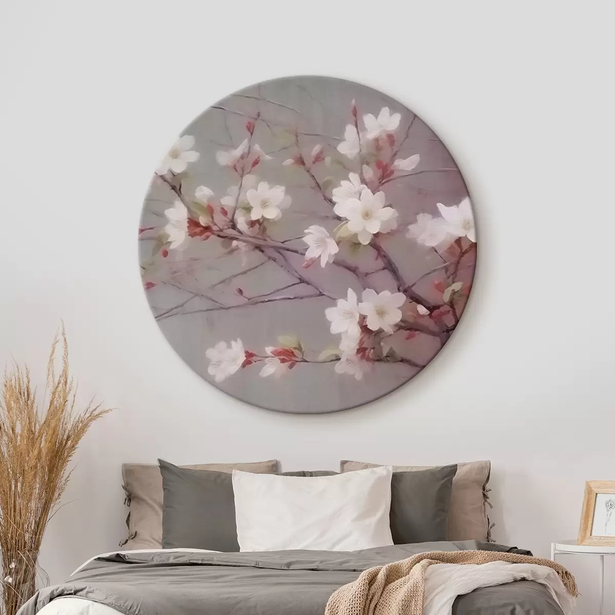 Quadri rotondi Un ramo con fiori bianchi r42339