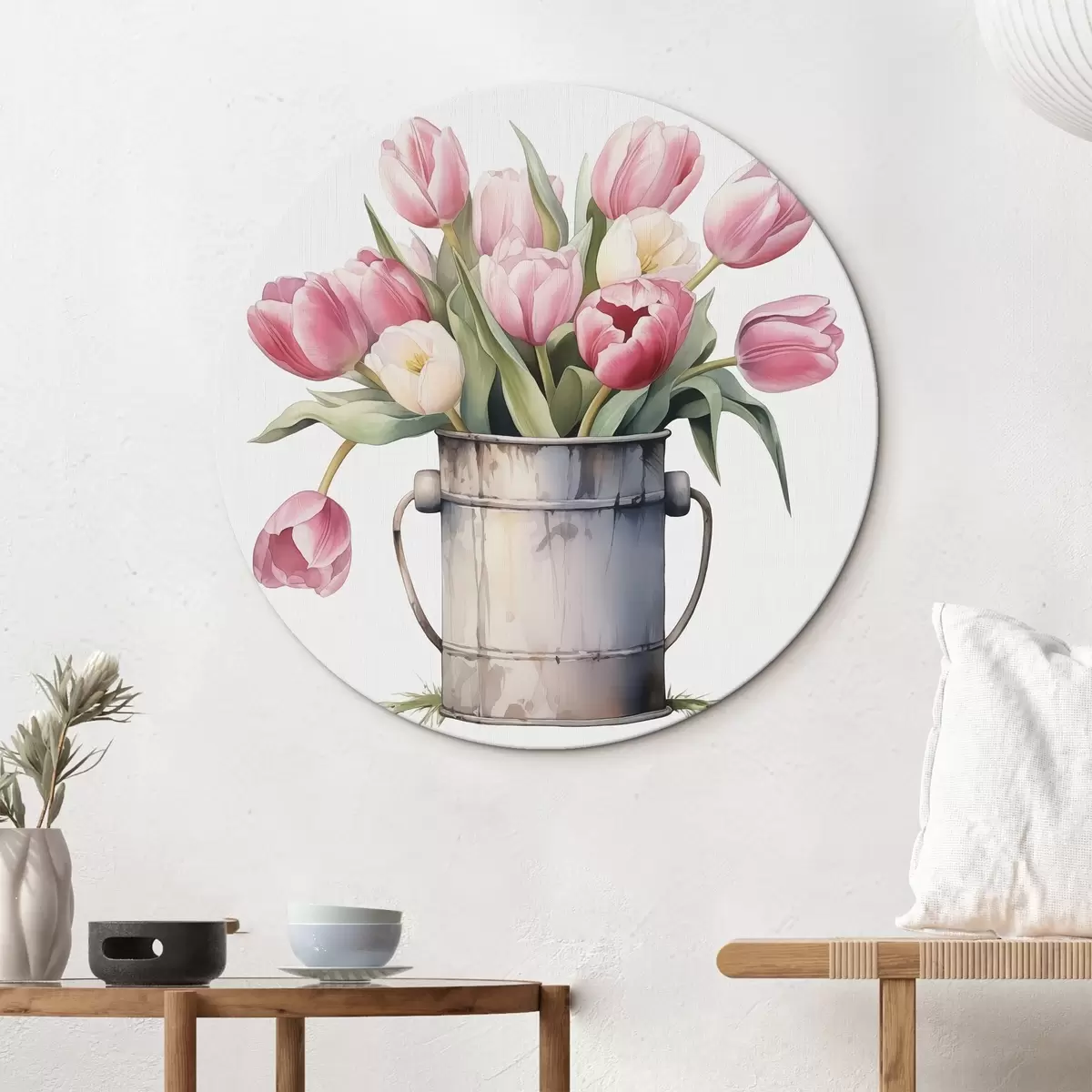 Quadri rotondi Bouquet di tulipani in un secchio ad imitazione dell'acquerello r42353