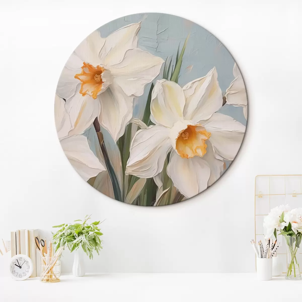 Quadri rotondi Narcisi bianchi grande imitazione di pittura r42355