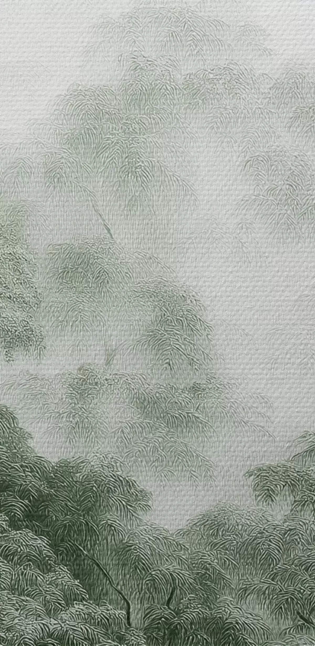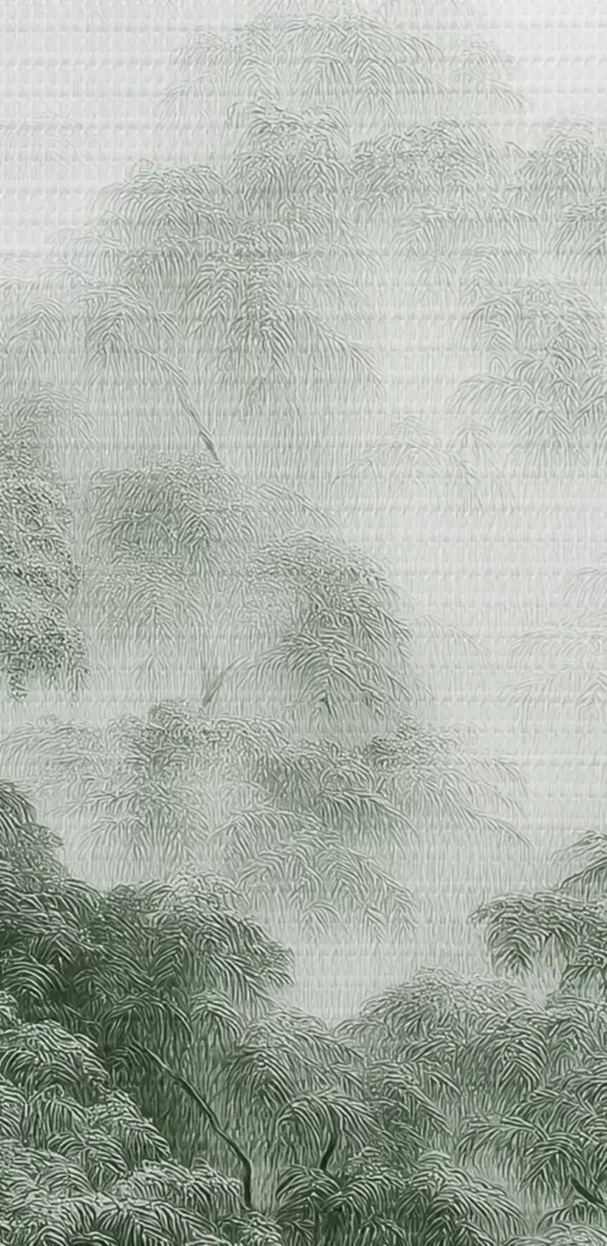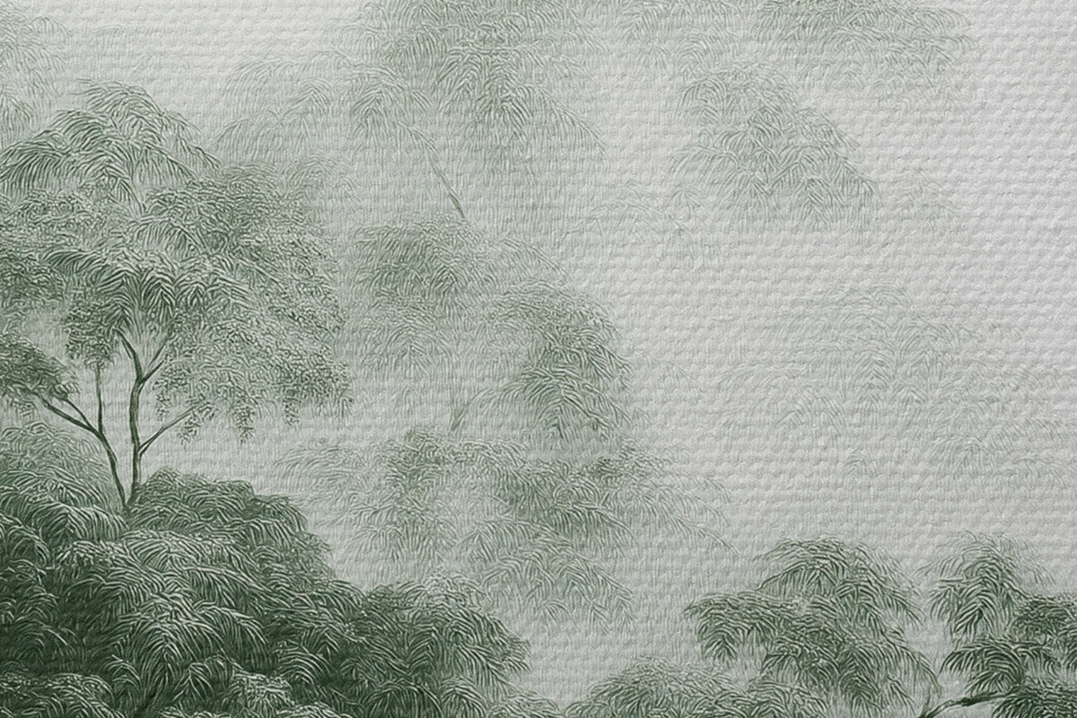 Immagine Foresta tropicale nella nebbia, palme, colori verdi Nr r42371