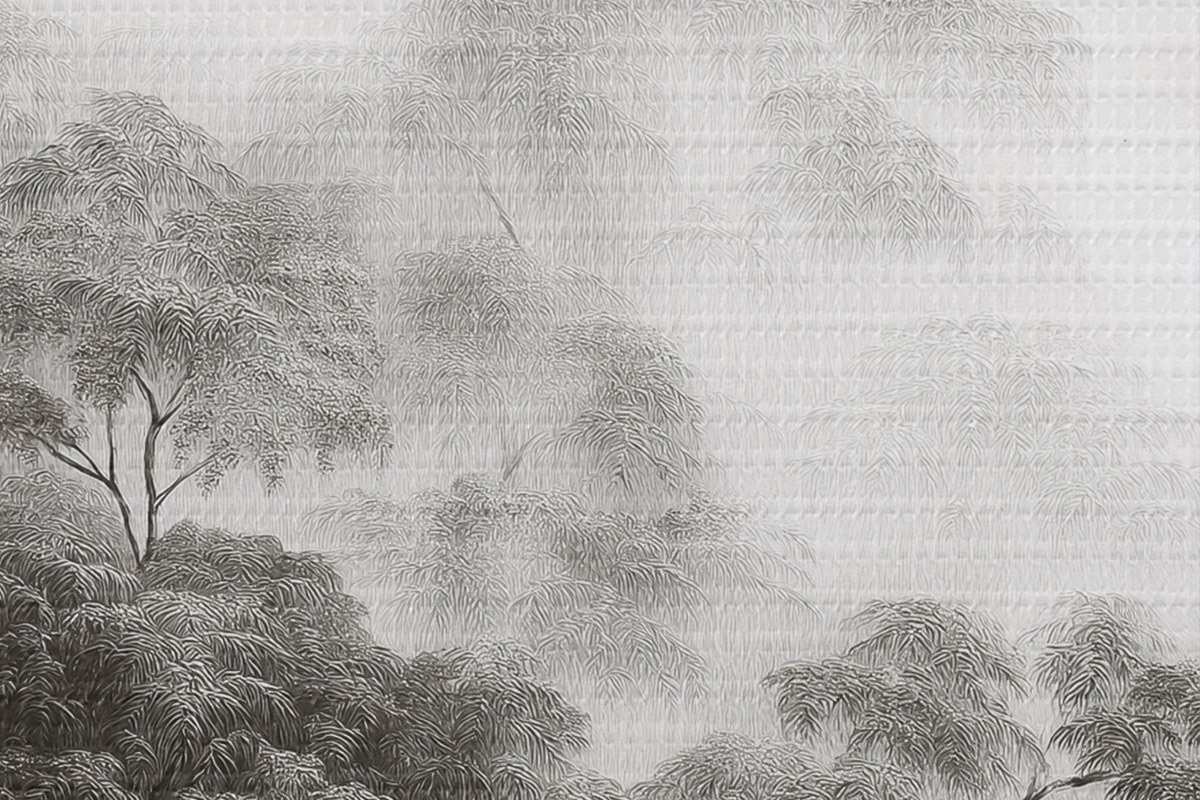 Immagine Foresta tropicale nella nebbia, palme, colori grigi Nr r42371v1