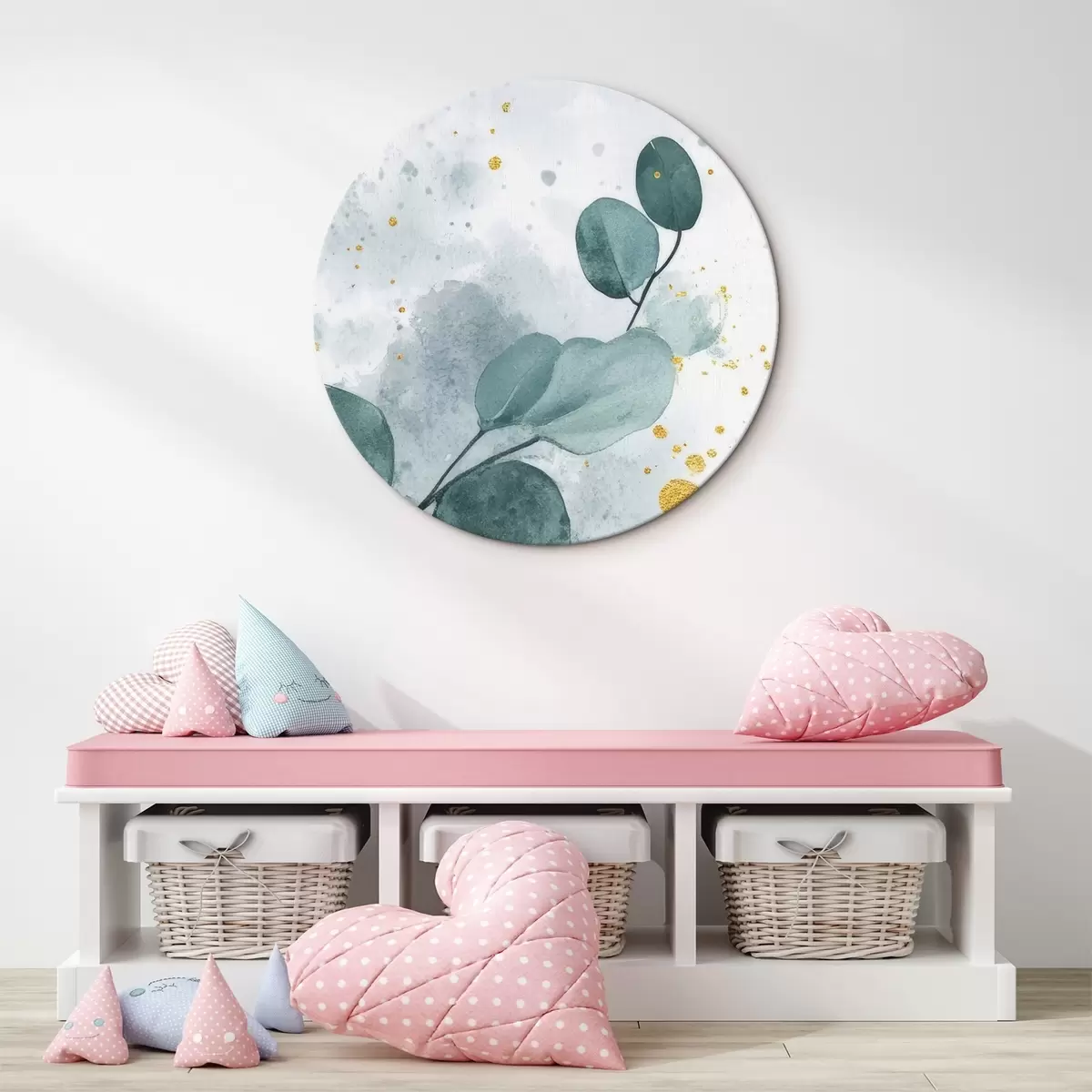 Quadri rotondi Ramo di eucalipto su un delicato sfondo acquerellato r42389