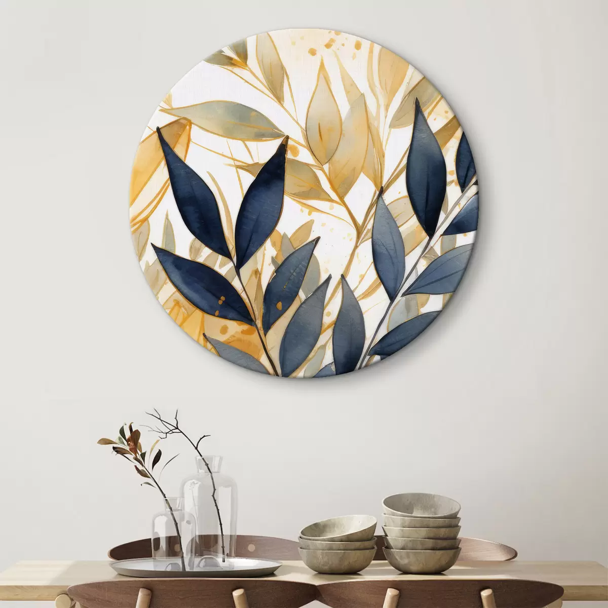 Quadri rotondi Rami chiari e scuri su sfondo acquerellato r42394