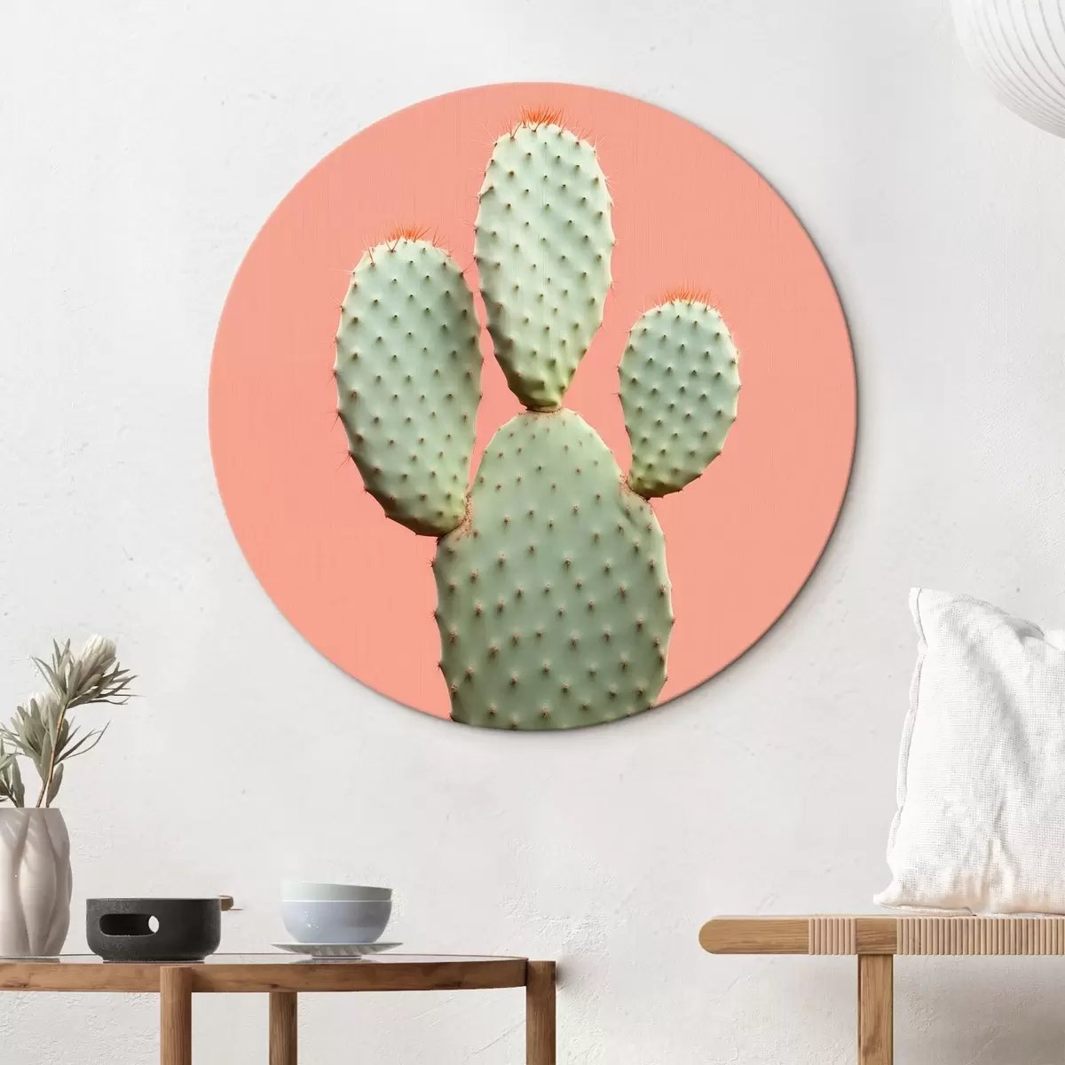 Quadri rotondi Cactus minimalista su sfondo rosa r42412