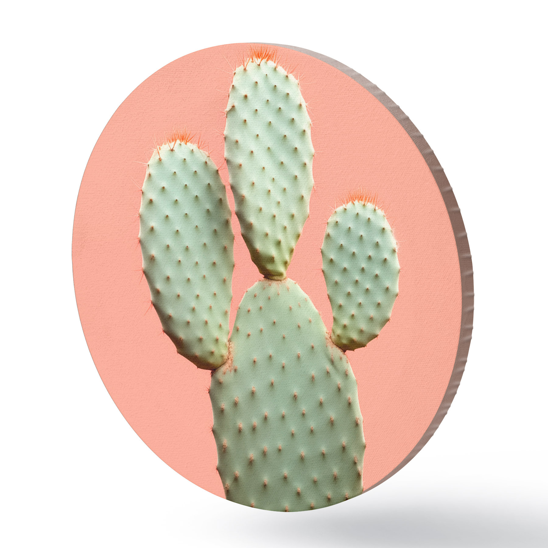 Quadri rotondi Cactus minimalista su sfondo rosa r42412