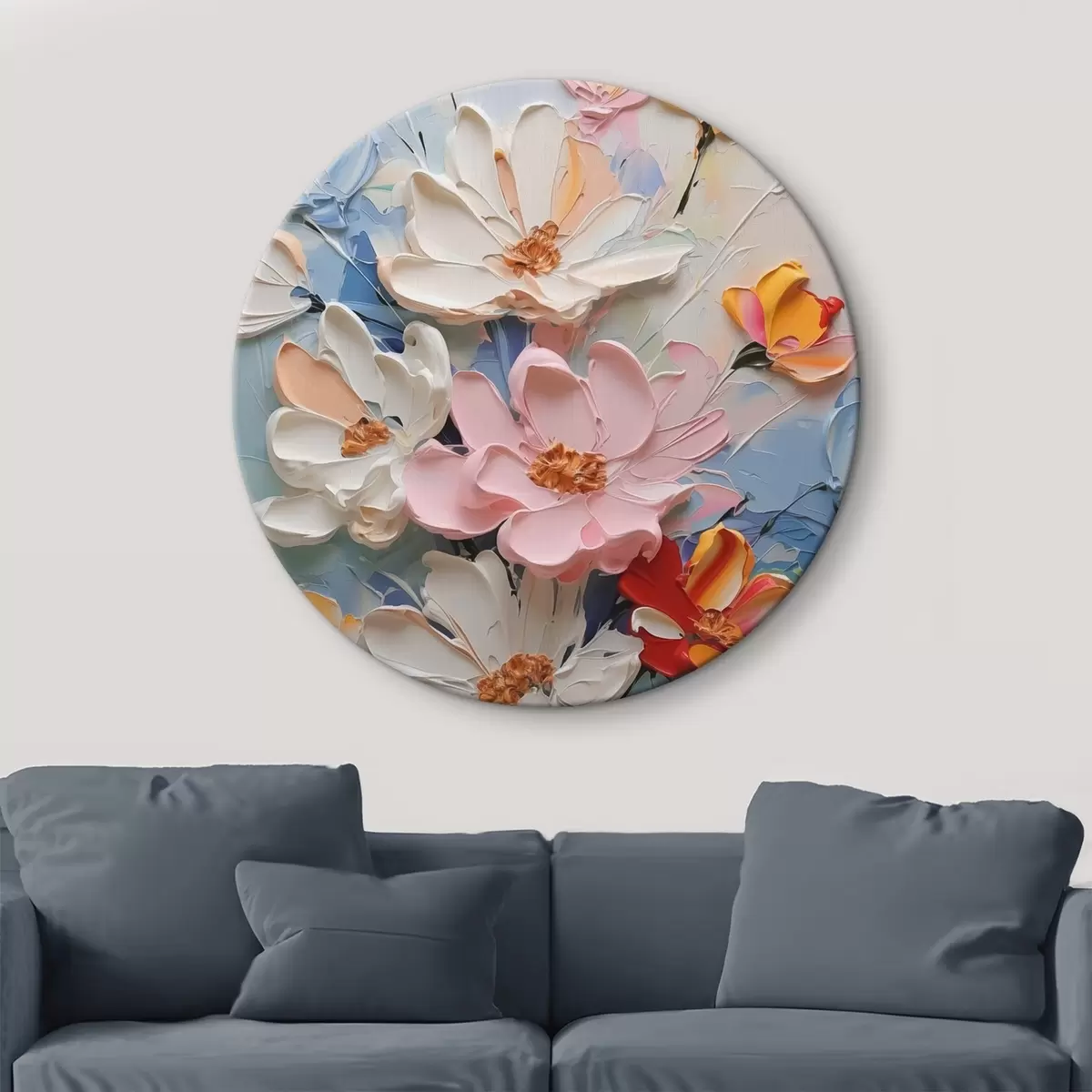 Quadri rotondi I fiori luminosi imitano le pennellate di colore r42419