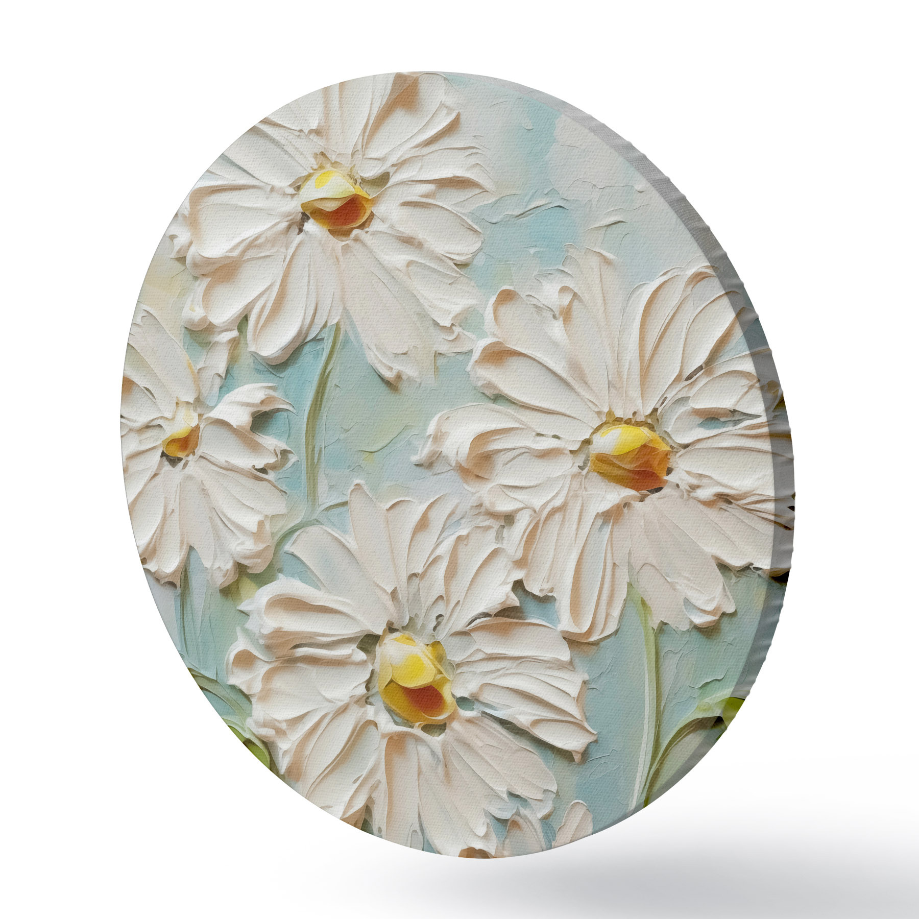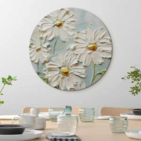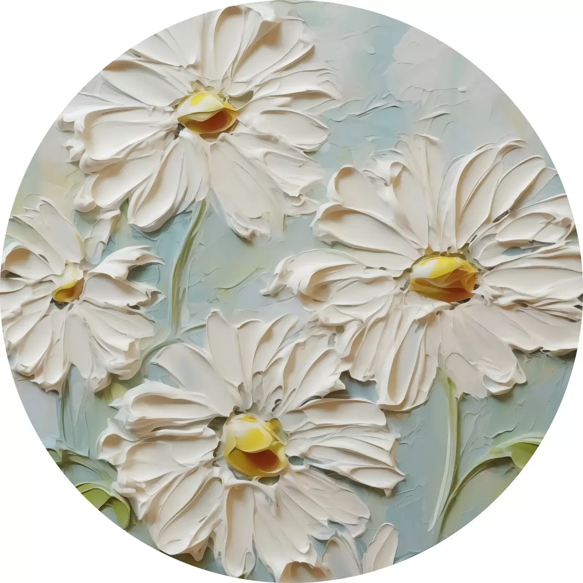Quadri rotondi Margherite bianche ad imitazione di pennellate di colore r42422