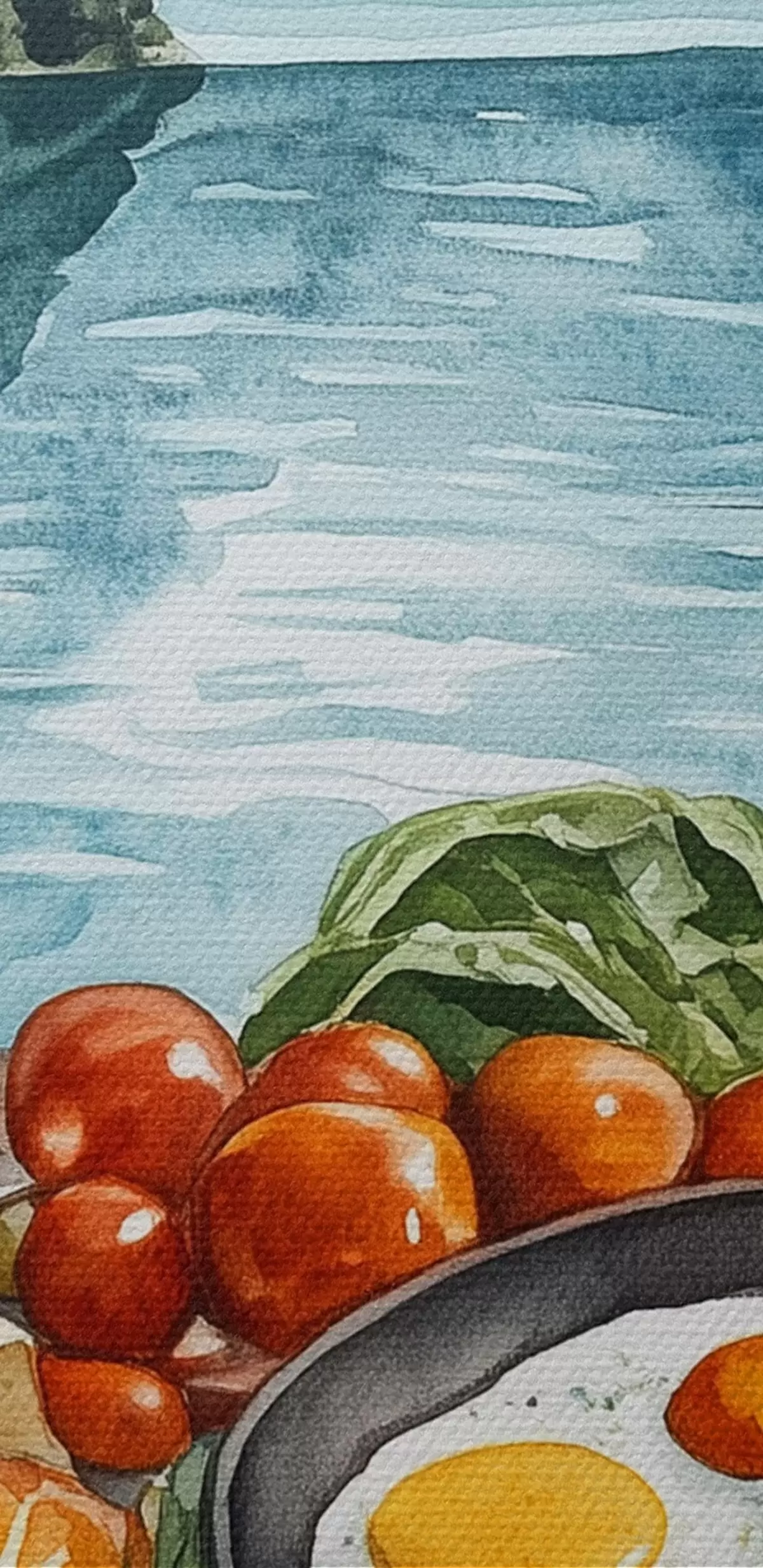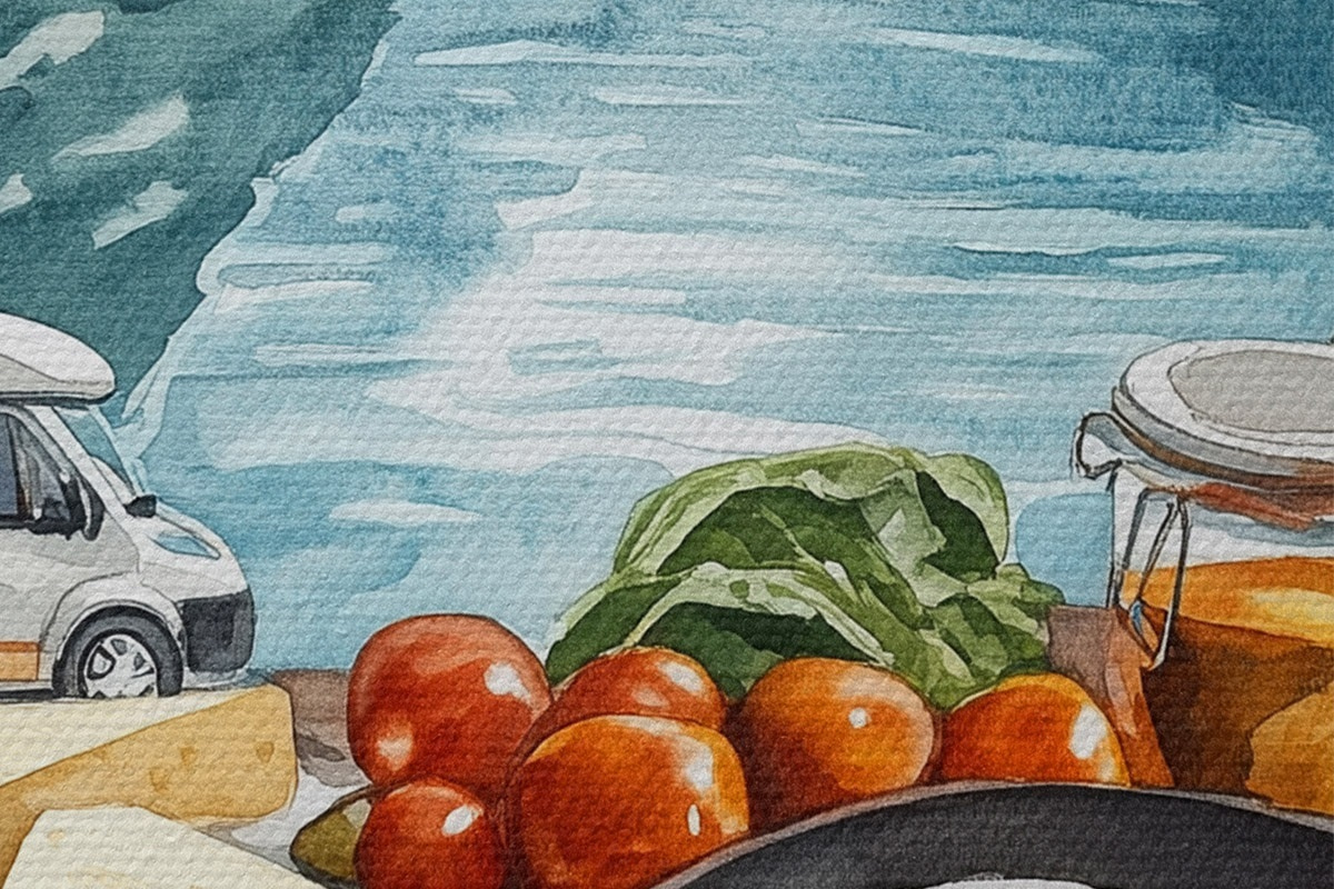 Immagine Viaggi, paesaggi naturali, stile acquerello, Norvegia, colazione, furgone Nr r42431