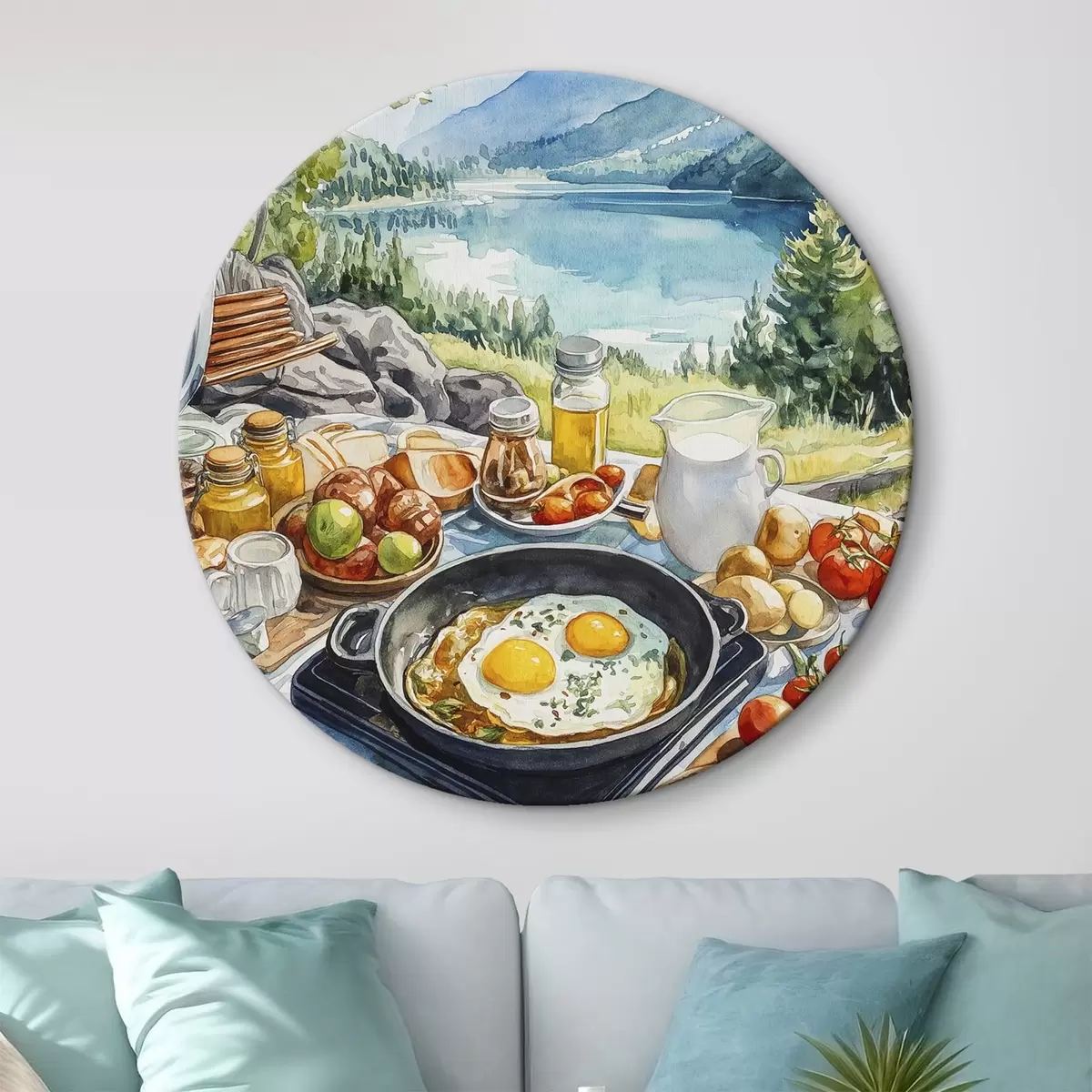 Quadri rotondi Colazione estetica vicino al lago, stile acquerello r42432