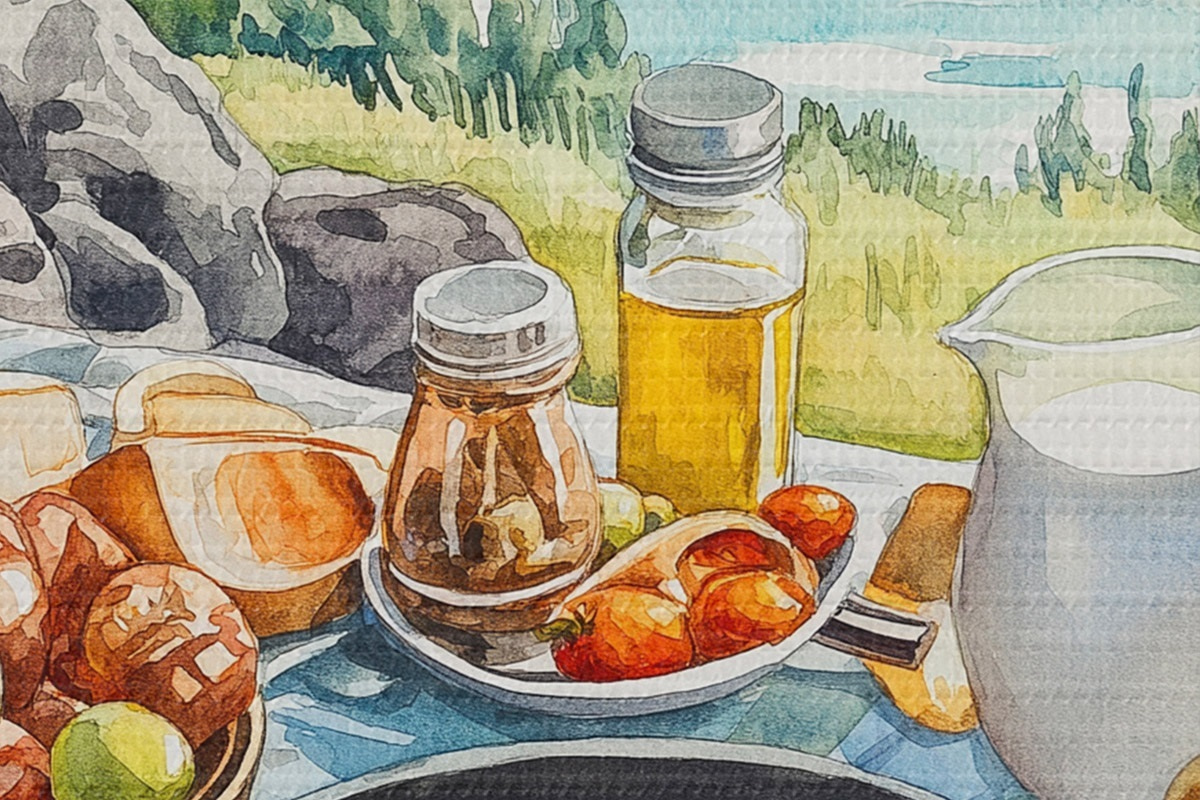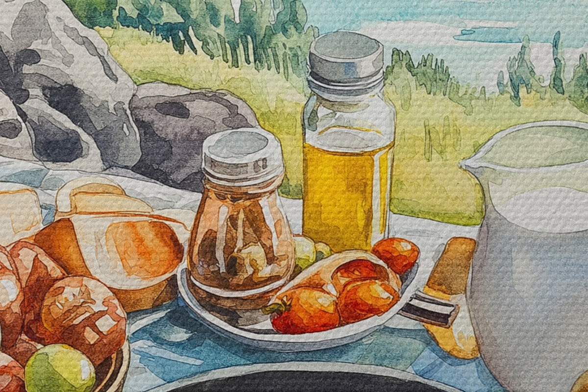 Immagine Colazione estetica vicino al lago, stile acquerello Nr r42432
