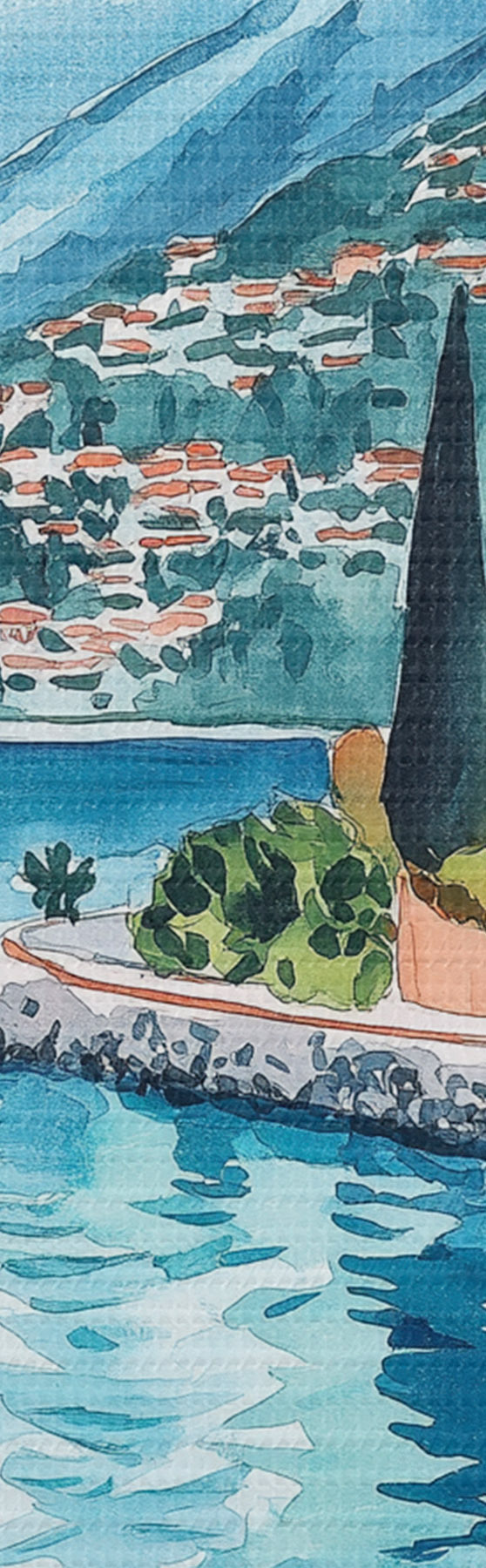 Immagine Lago di Como, Italia, stile acquerello, pizza, cocktail, città vecchia, montagne Nr r42437