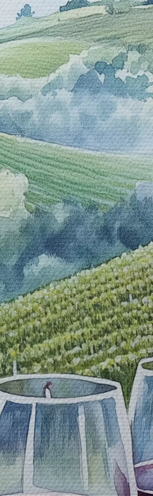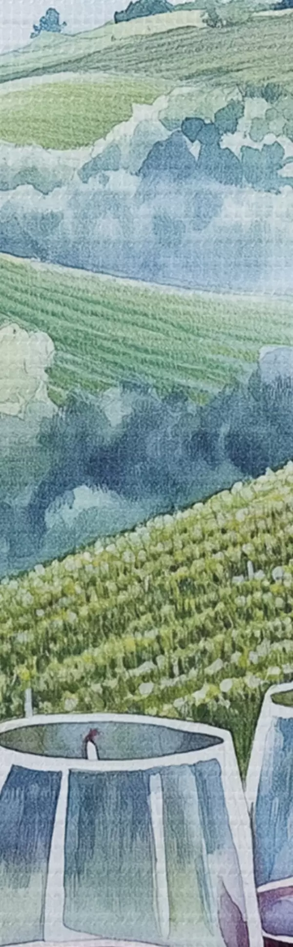 Immagine Paesaggio toscano, cantieri d'uva, bicchieri di vino, stile acquerello Nr r42445