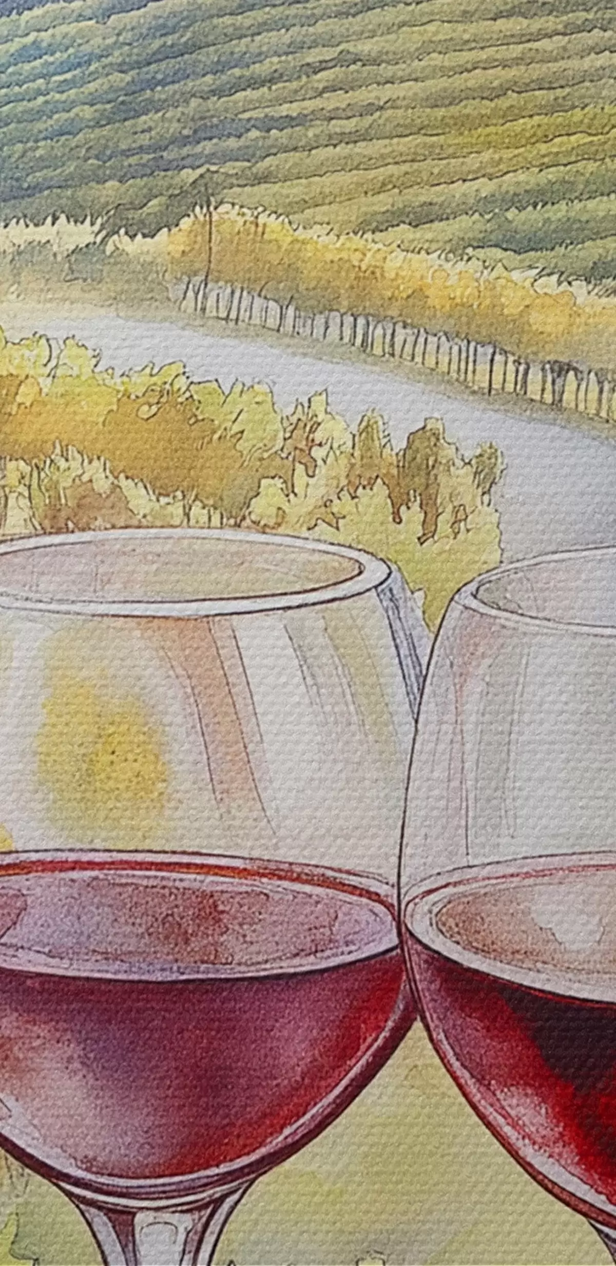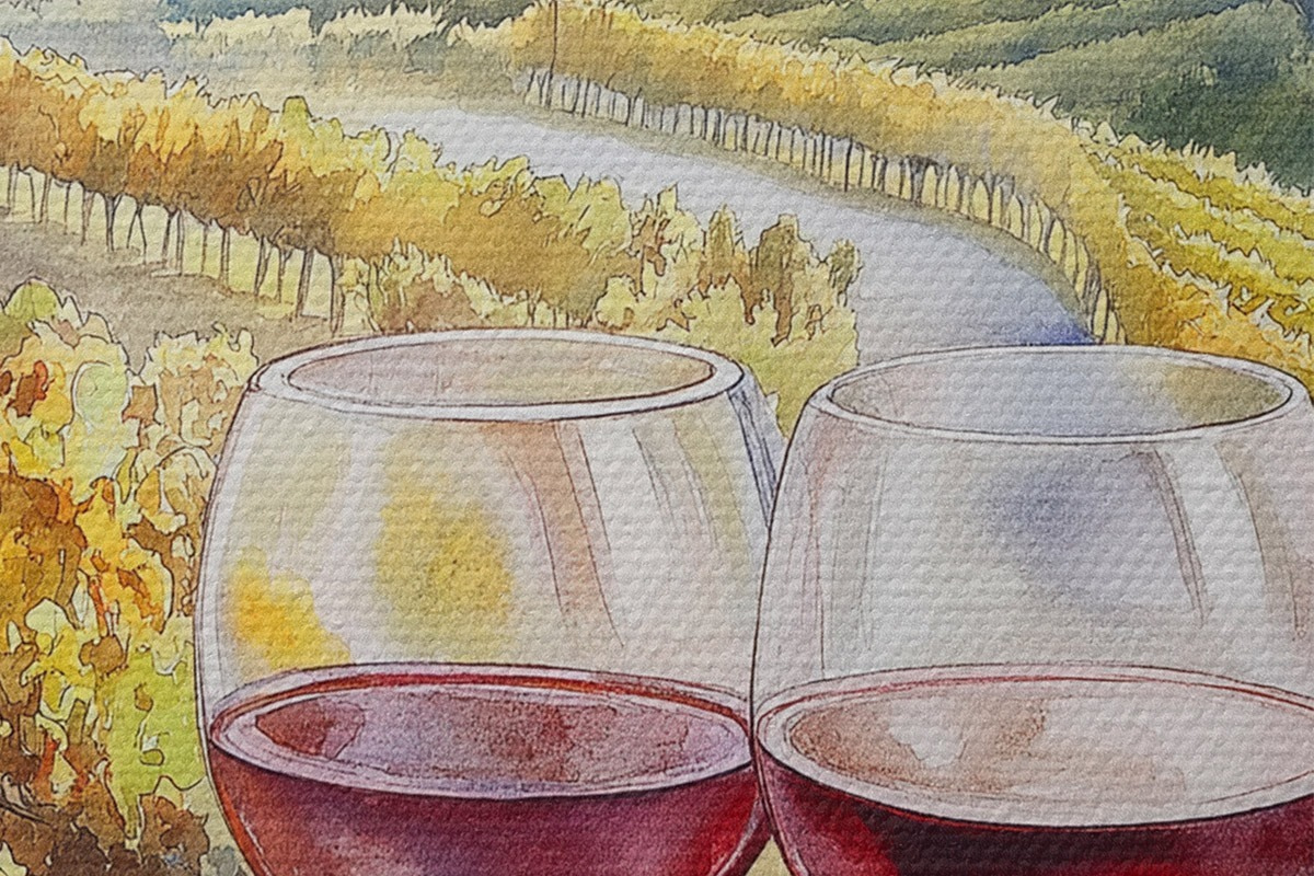 Immagine Tramonto in Toscana, cantina, architettura antica, stile acquerello, Italia Nr r42446