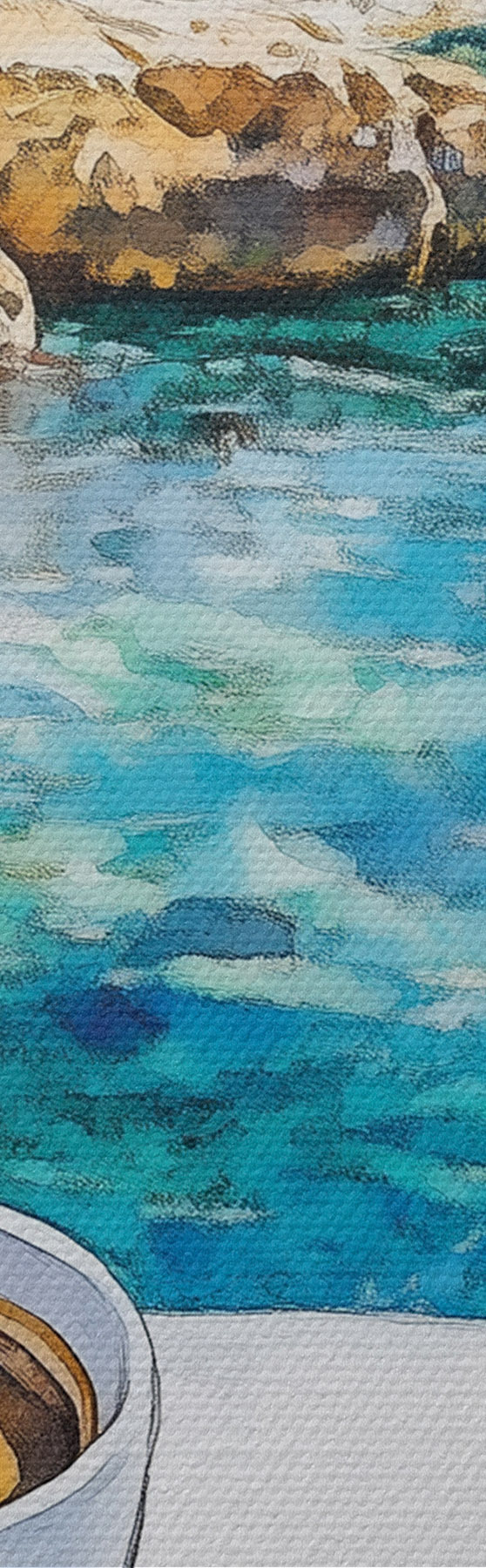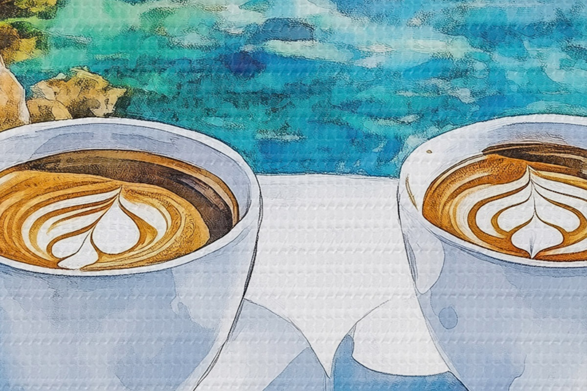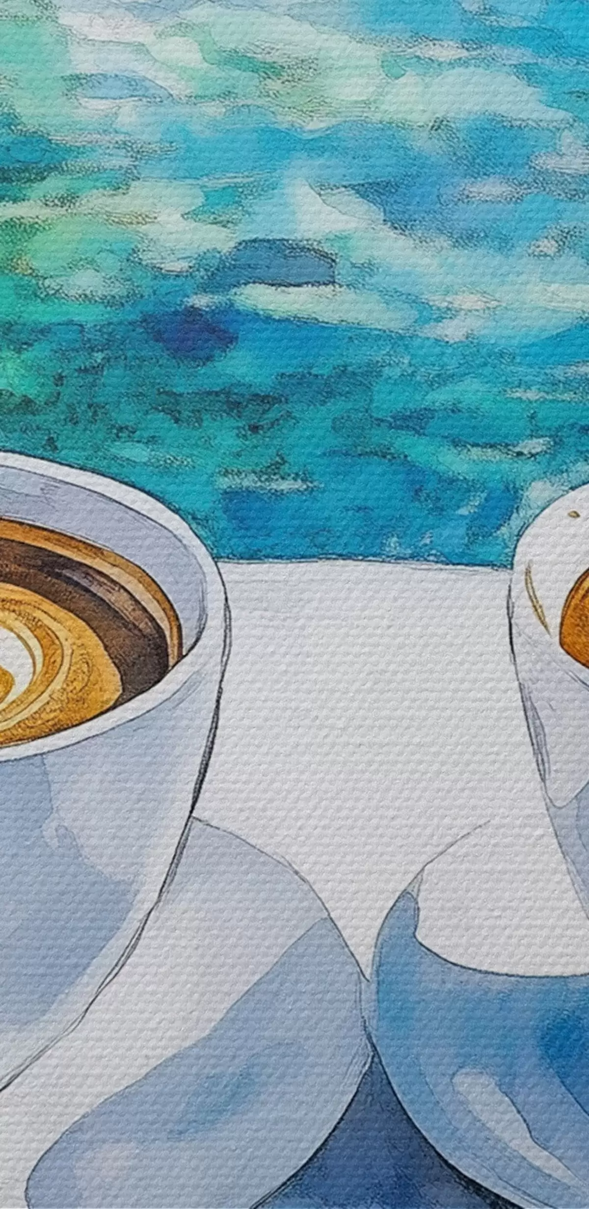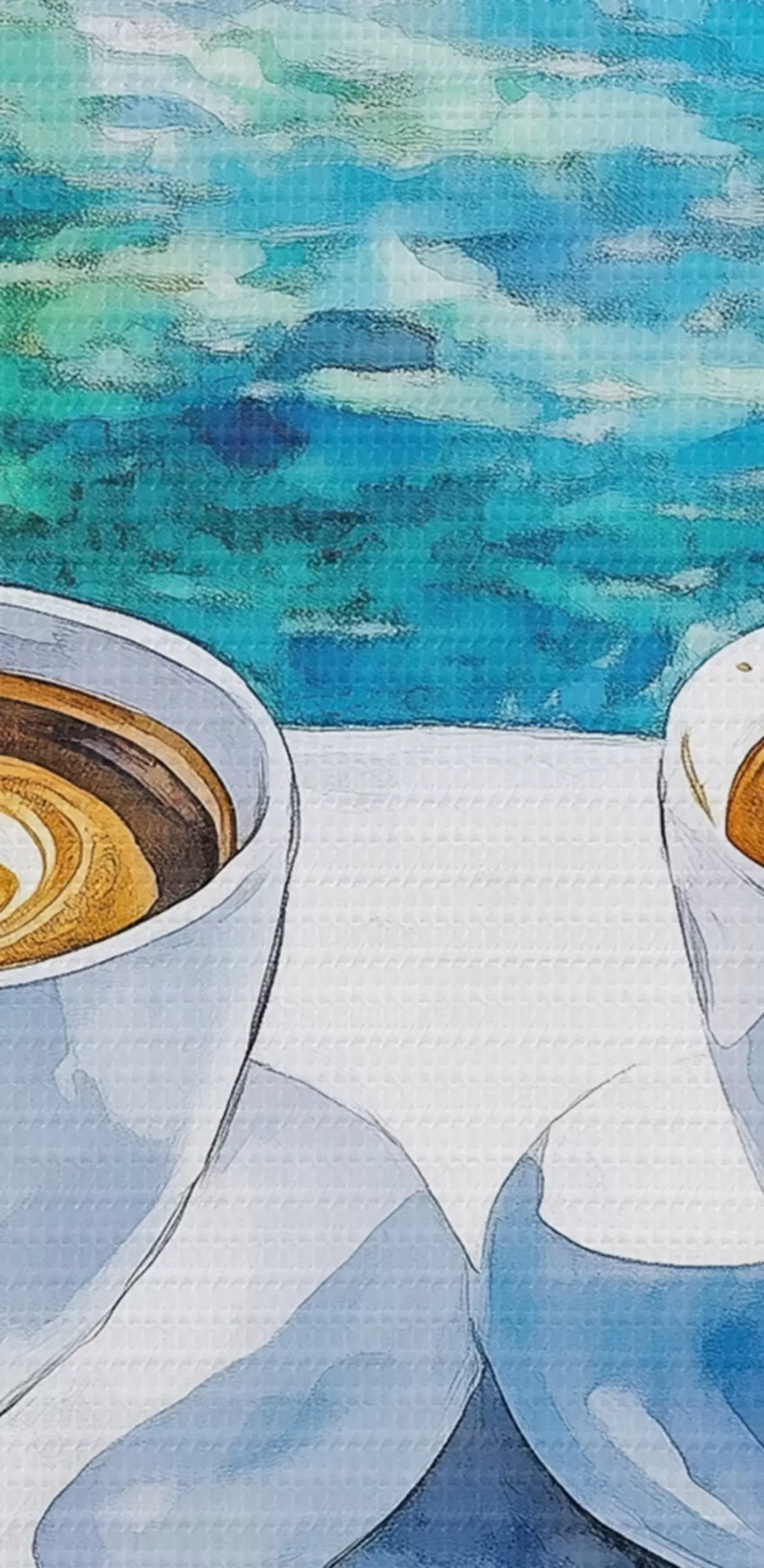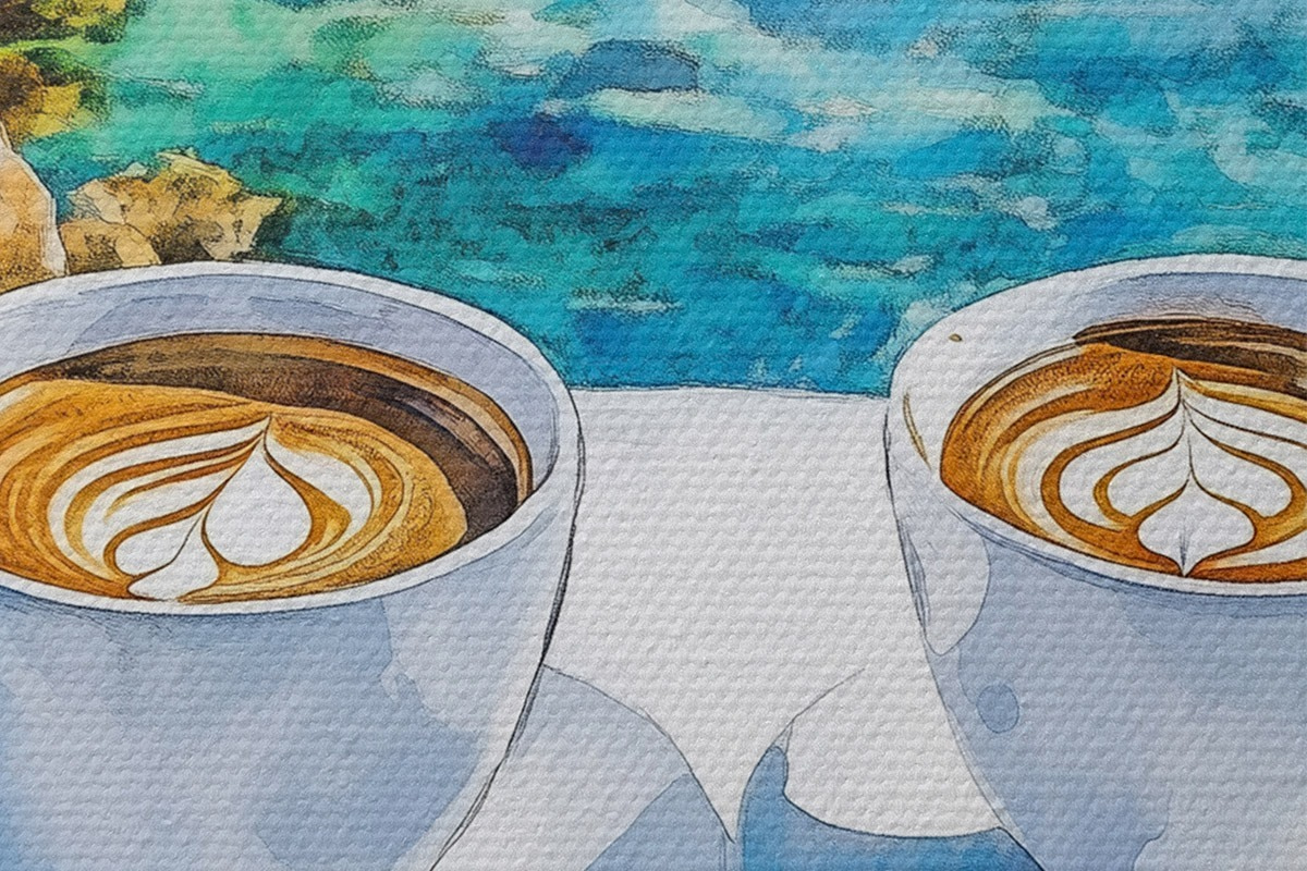 Immagine Grecia estetica, tazze di caffè, mare blu, città vecchia, viaggio Nr r42447
