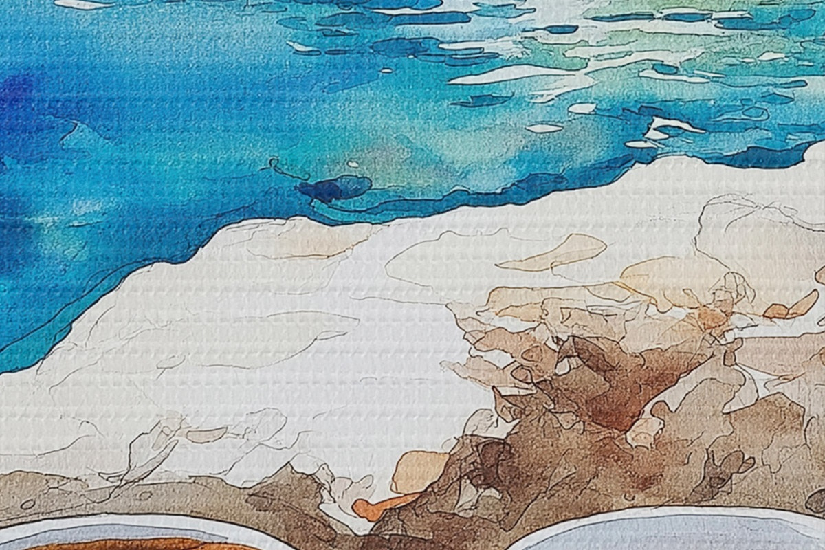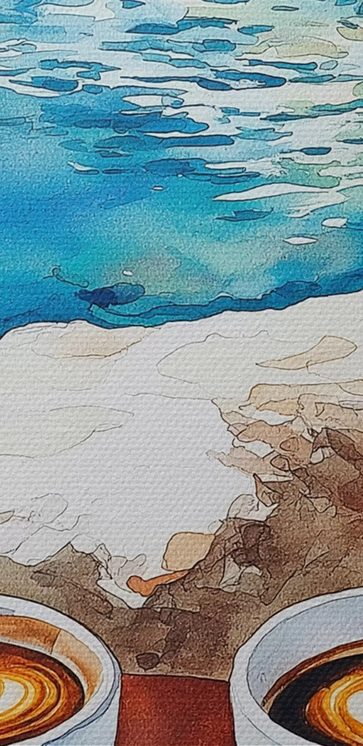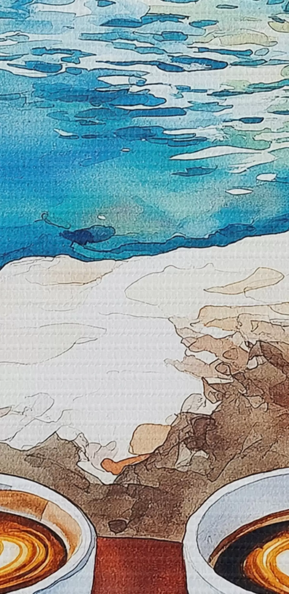 Immagine Acquerello lato mare con tazze di caffè, estate Nr r42449