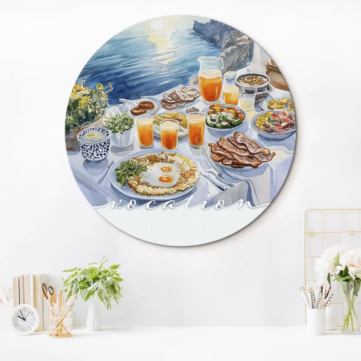Quadri rotondi Vocazione romantica in Grecia, stile acquerello, colazione, alba r42453