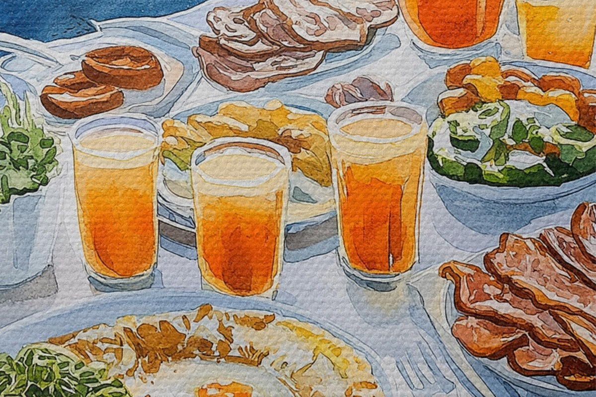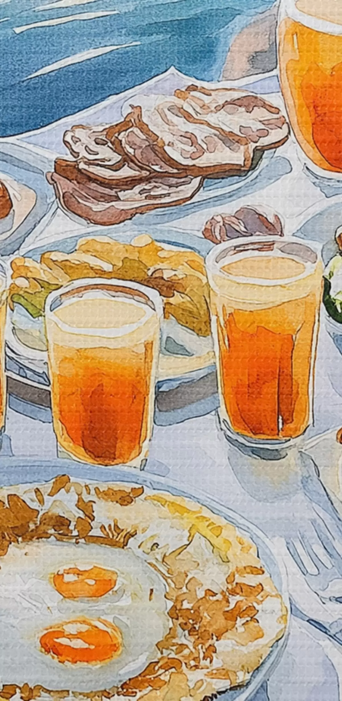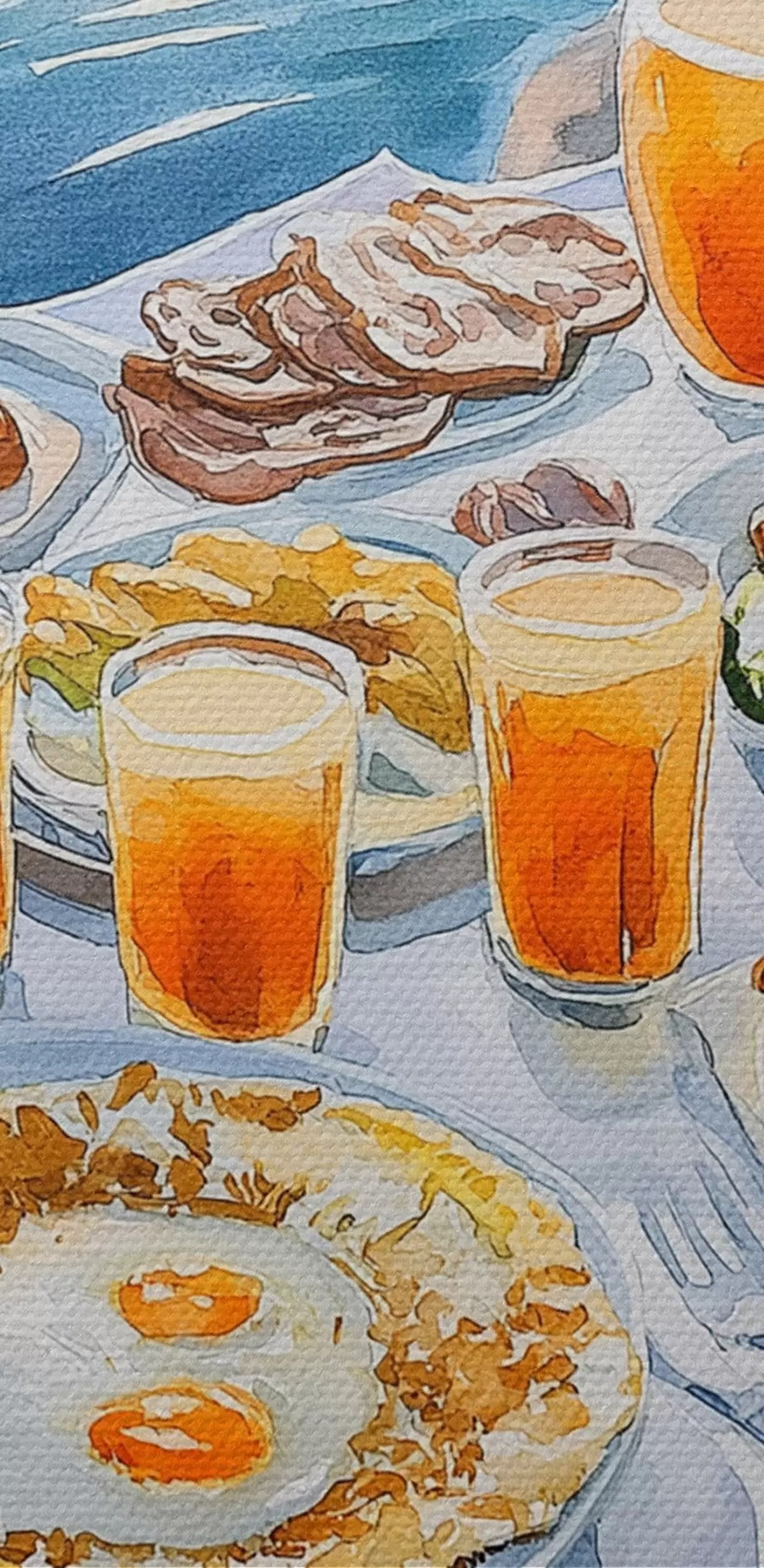 Immagine Vocazione romantica in Grecia, stile acquerello, colazione, alba Nr r42453