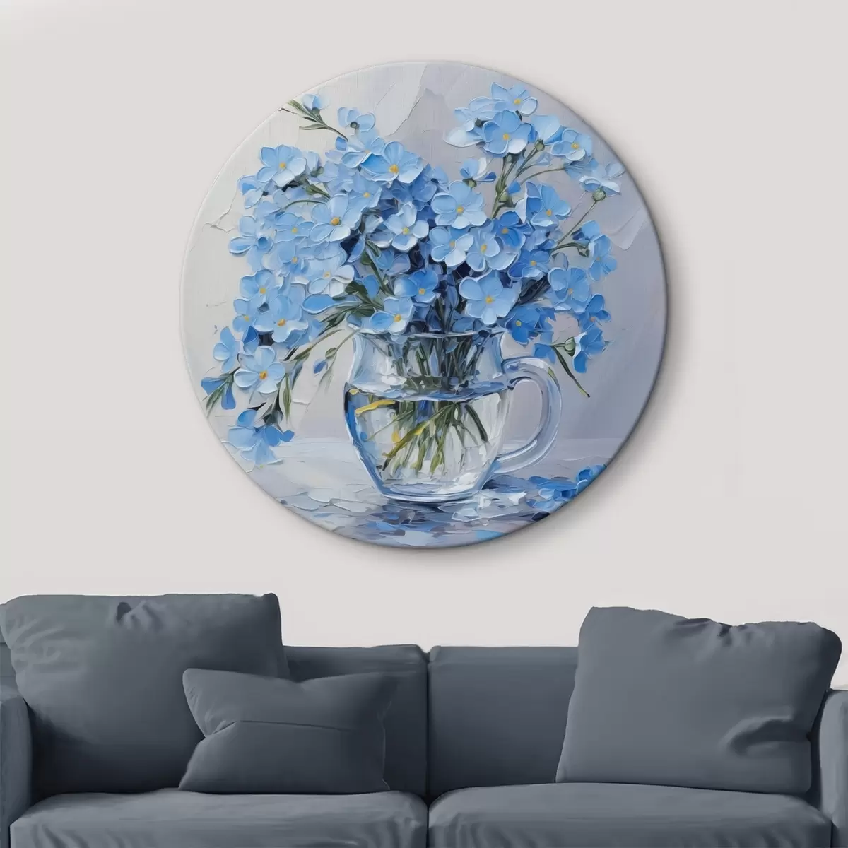 Quadri rotondi Fiori blu in un vaso trasparente imitazione di un dipinto r42467