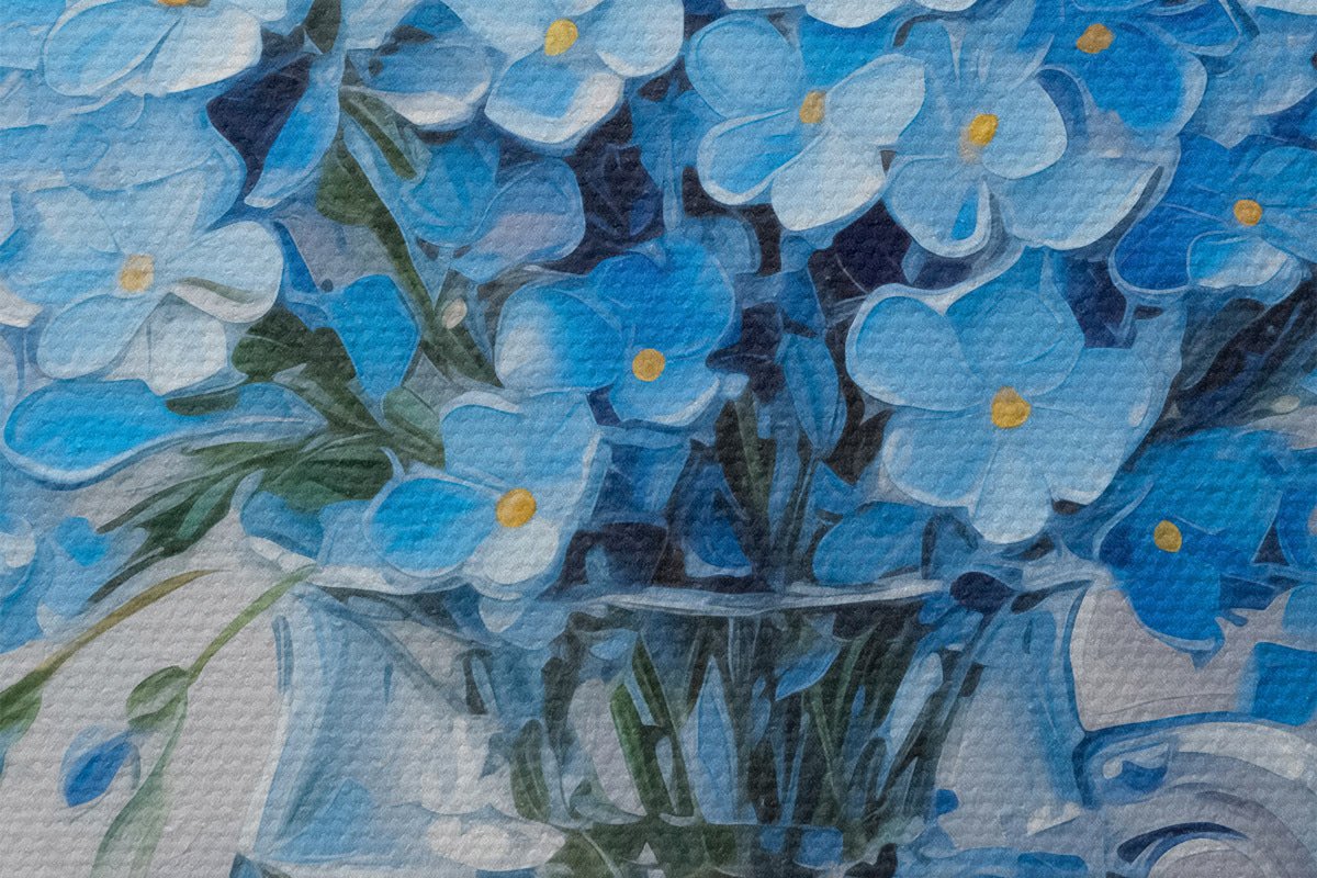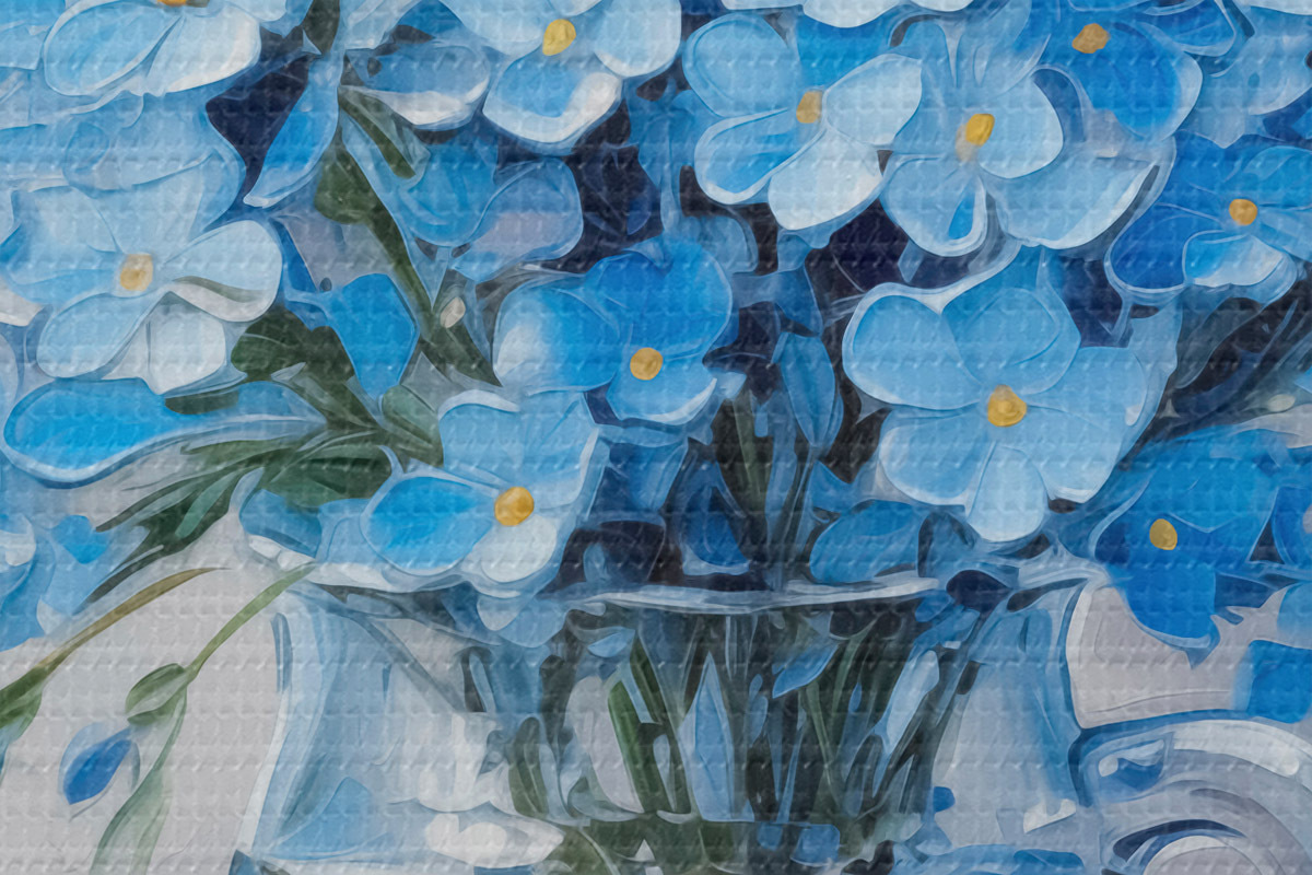 Immagine Fiori blu in un vaso trasparente imitazione di un dipinto Nr r42467