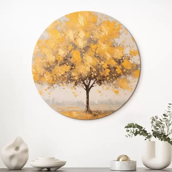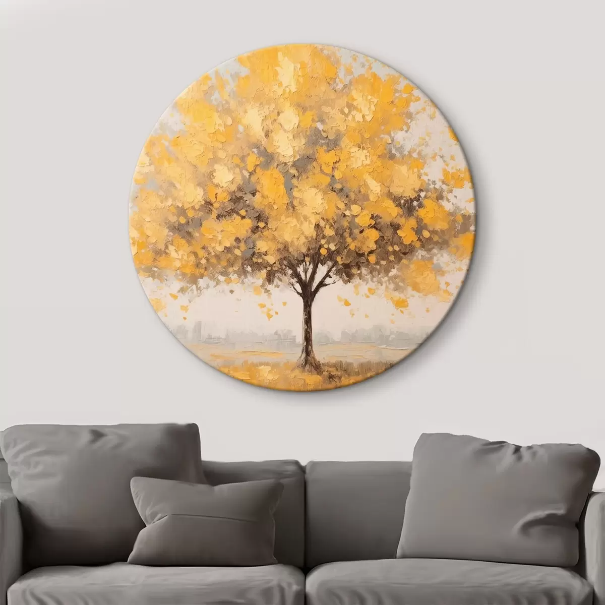 Quadri rotondi Albero con foglie gialle in stile impressionista r42480