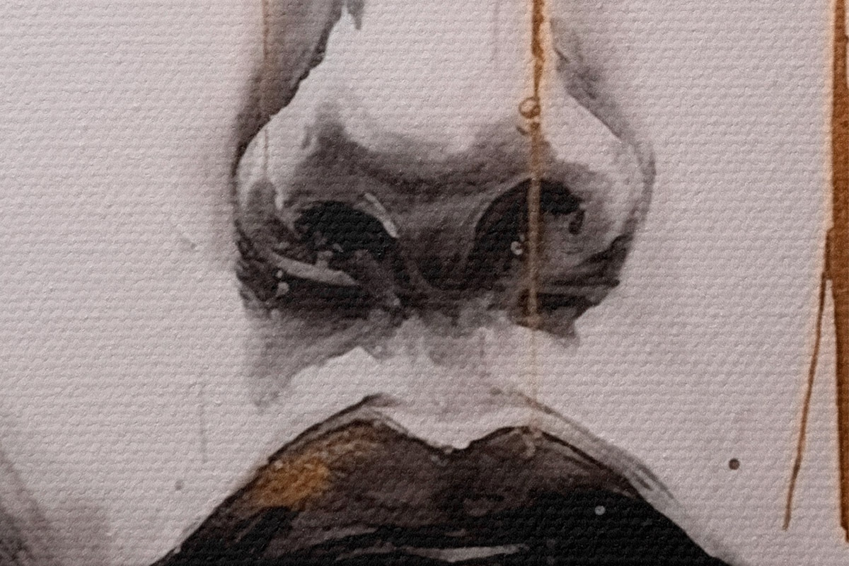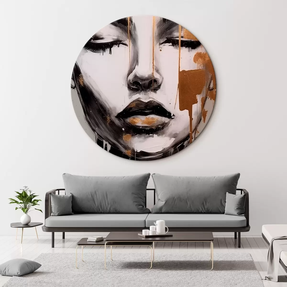Quadri rotondi Ritratto in bianco e nero con elementi astratti r42481